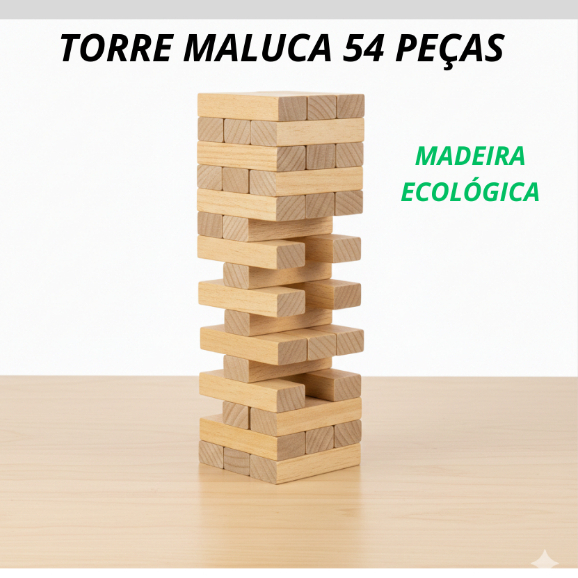 Jogo de Madeira Caiu Perdeu -TORRE MALUCA - Ecológico e Durável, Desenvolve Habilidades, 1 Jogo