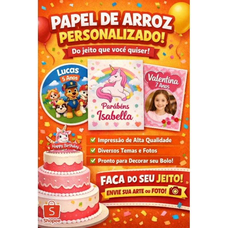 Papel de Arroz Personalizado para Bolo