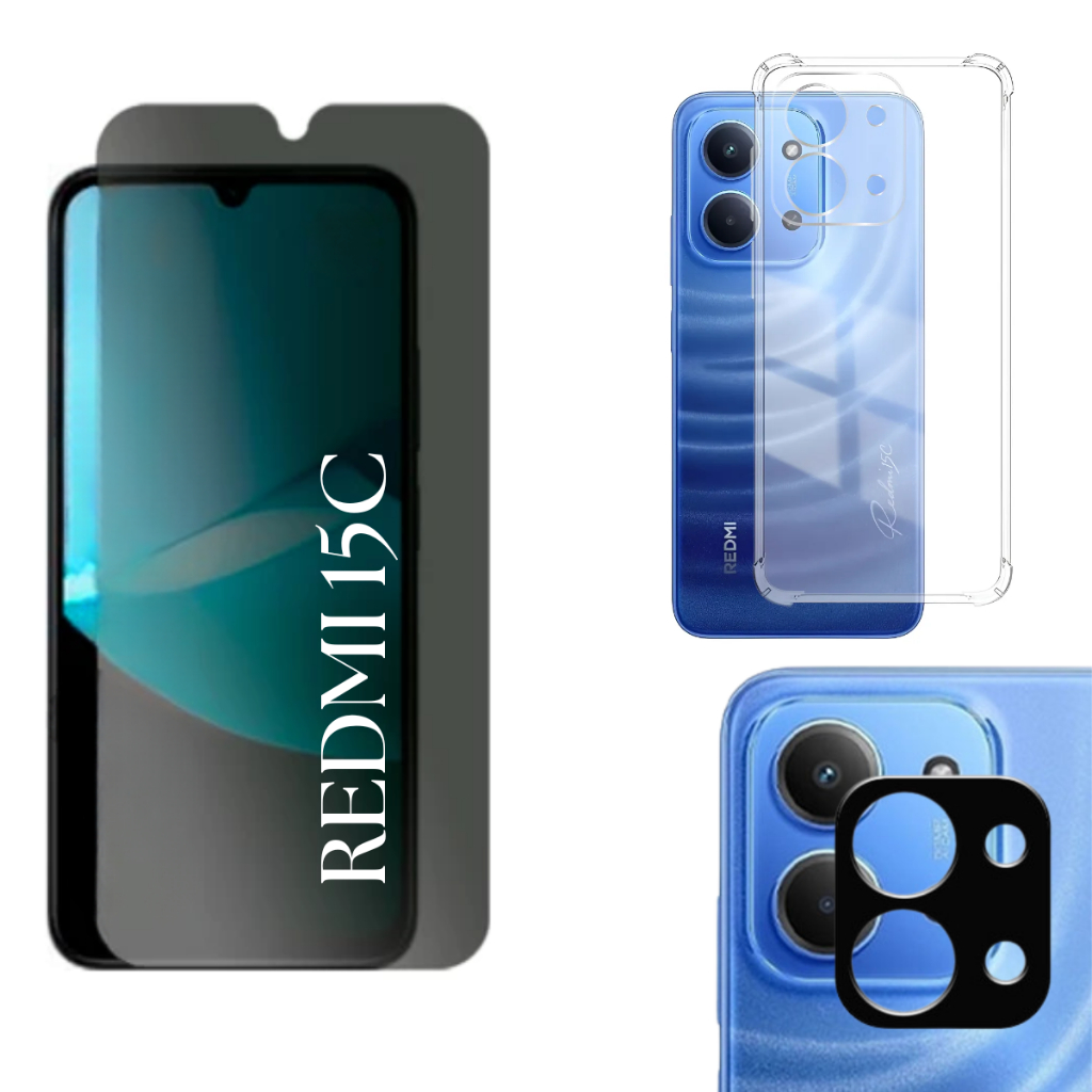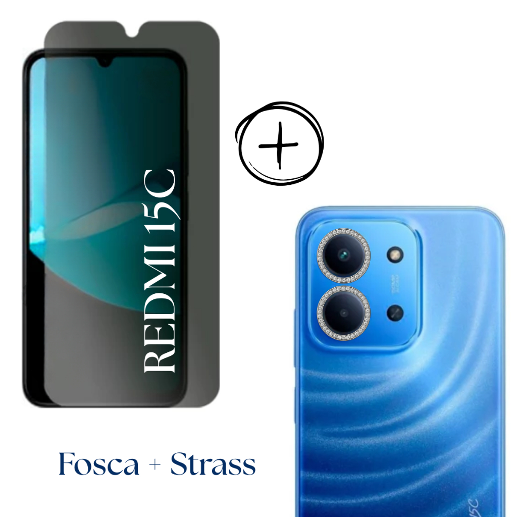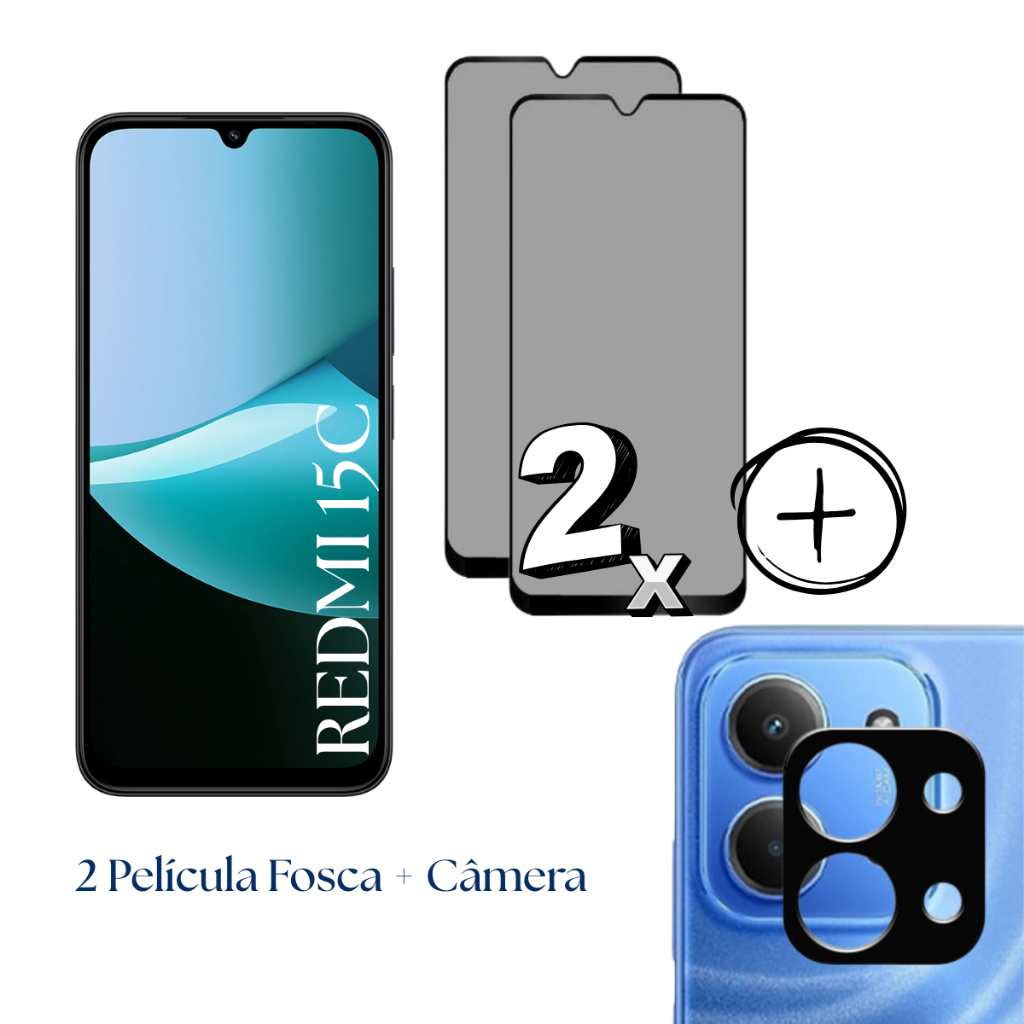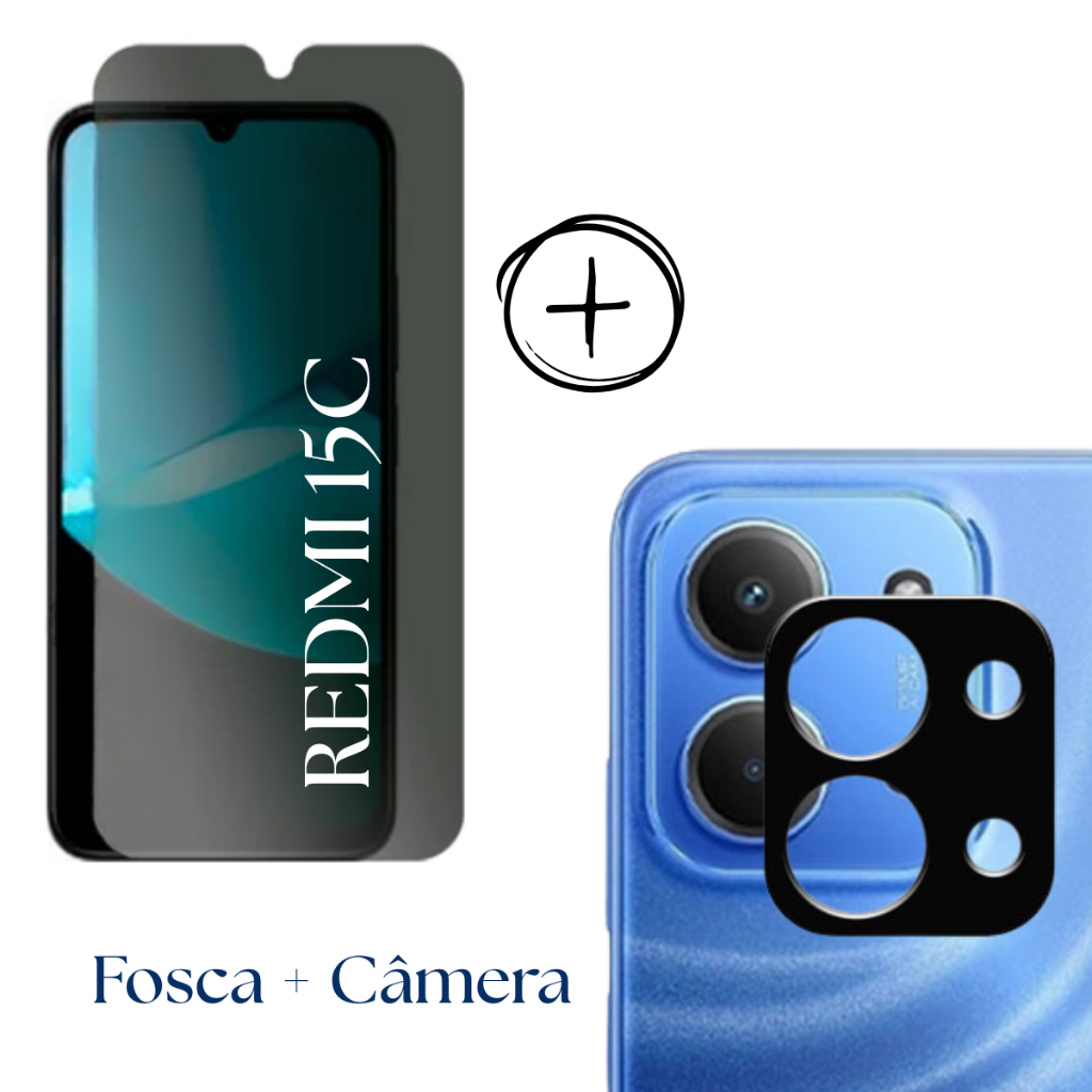 Película PREMIUM Privacidade Fosca Para Redmi 15C - Câmera 3D - Capa Anti Shock