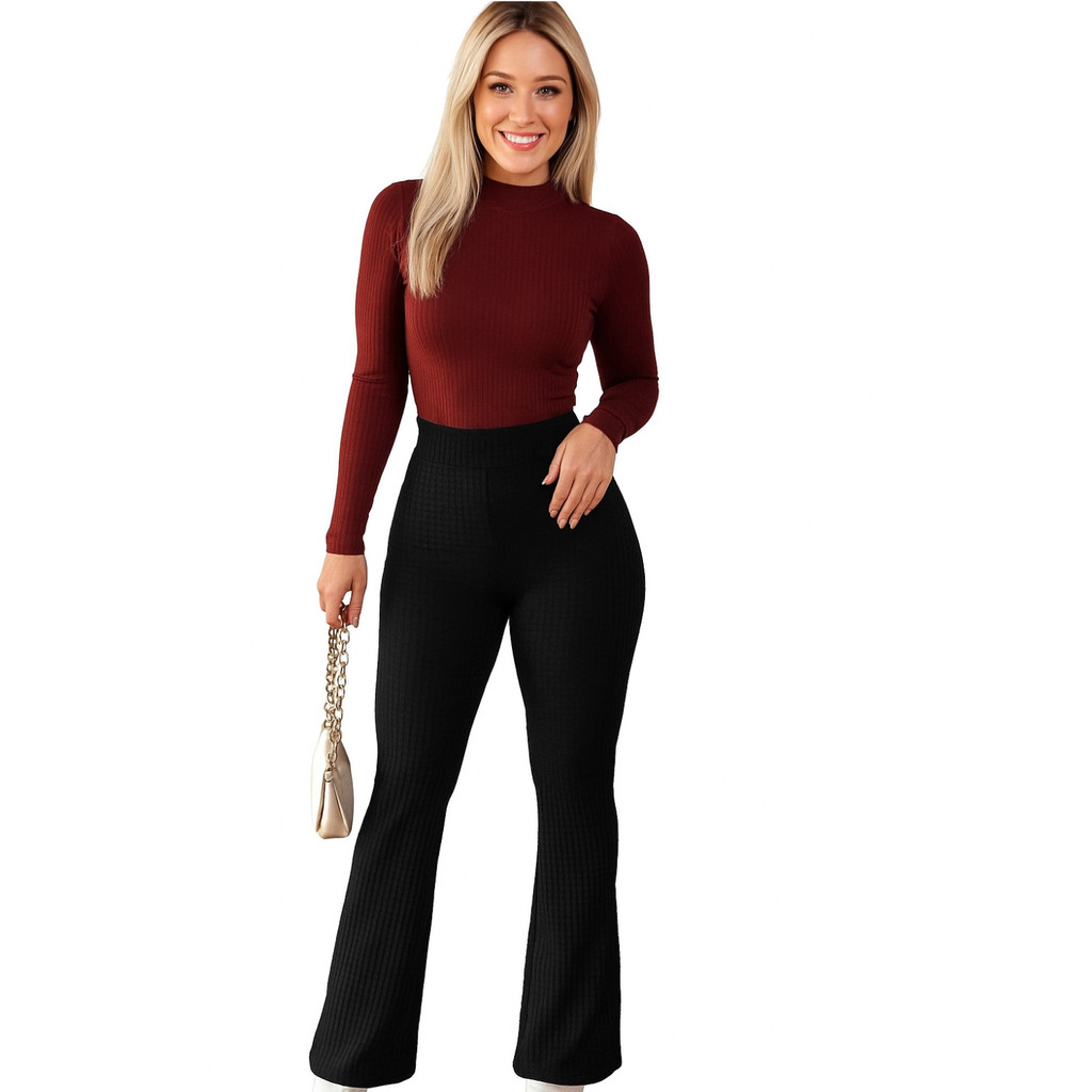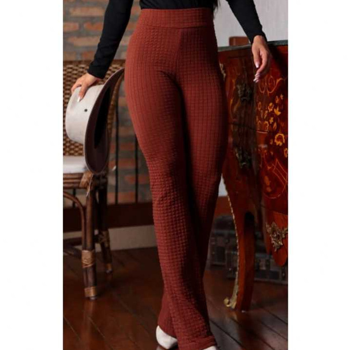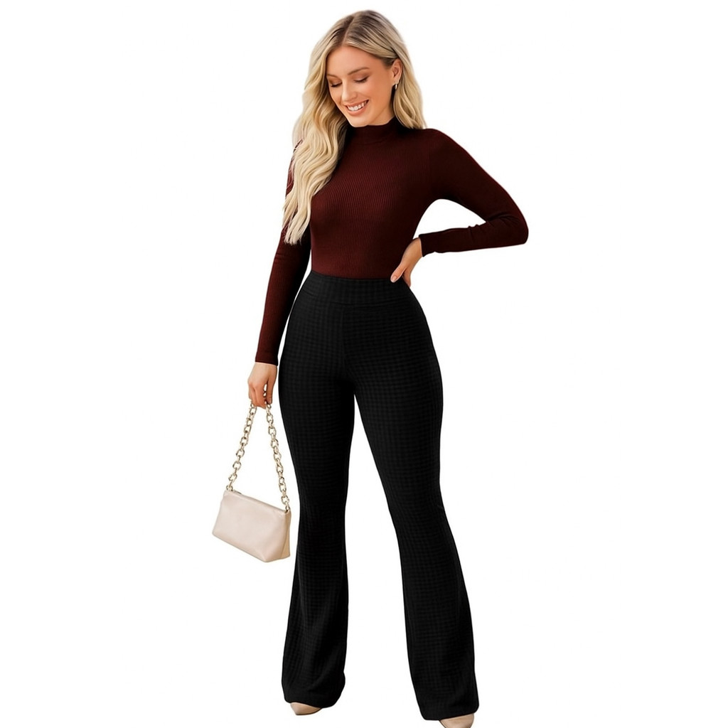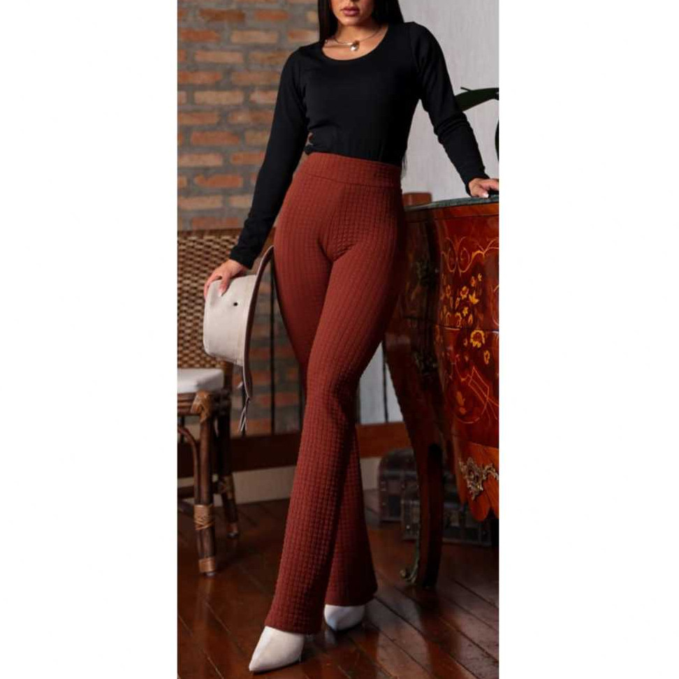 Calça Feminina Flare Tecido Bubble Estilosa Bolinha