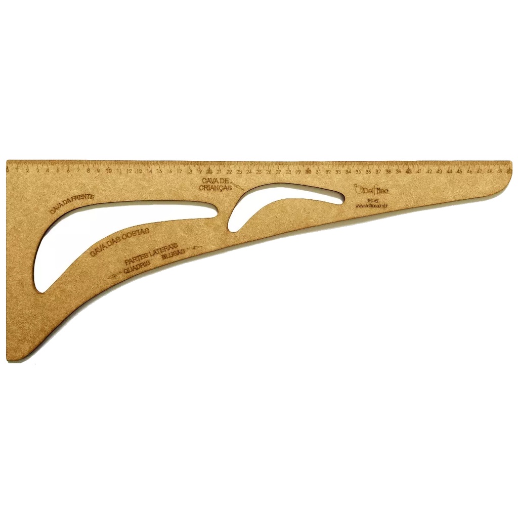 Kit Regua Conjunto Costura Profissional Modelista N°2 com 4Pçs Regua Francesa MDF