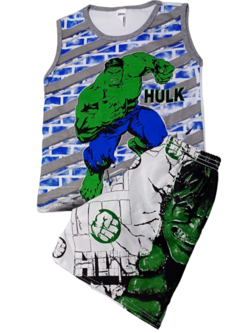 Conjunto Infantil Personagem Hulk 2 peças 1 Regata + 1 Short com elástico roupa infantil menino Natal e Ano Novo Promoção