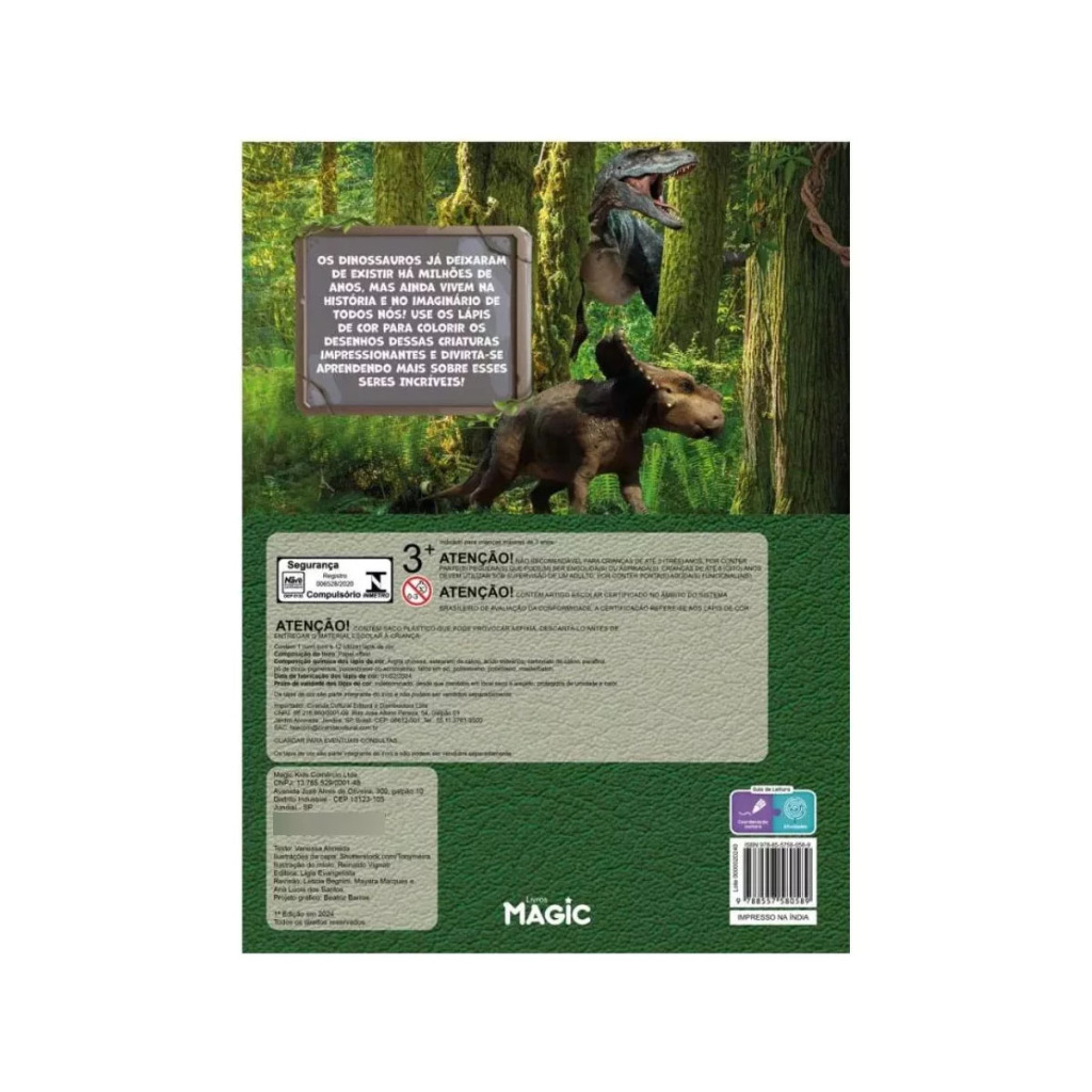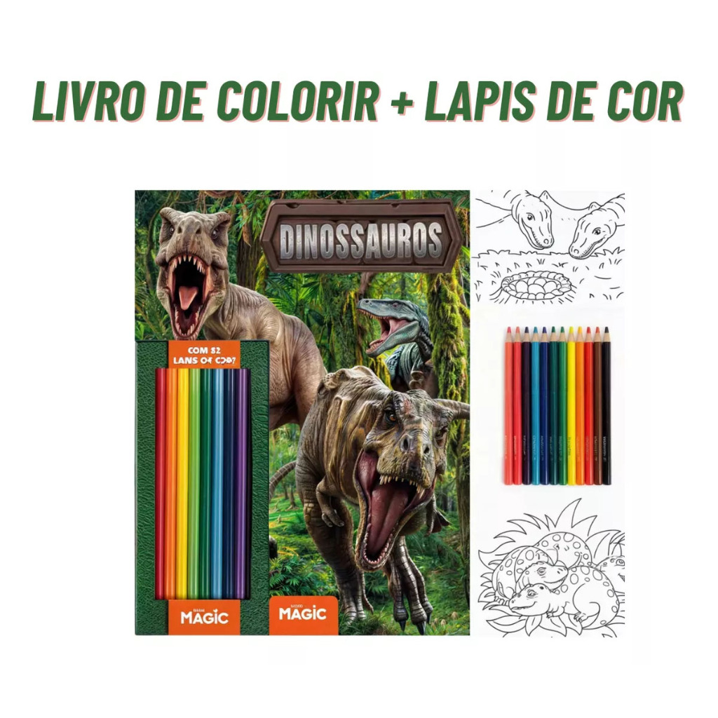 Livro De Colorir Dinossauros + 12 Lápis De Cor Inclusos