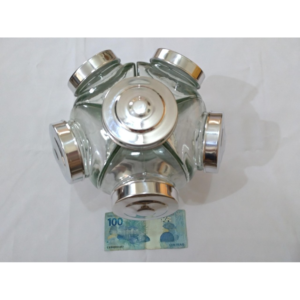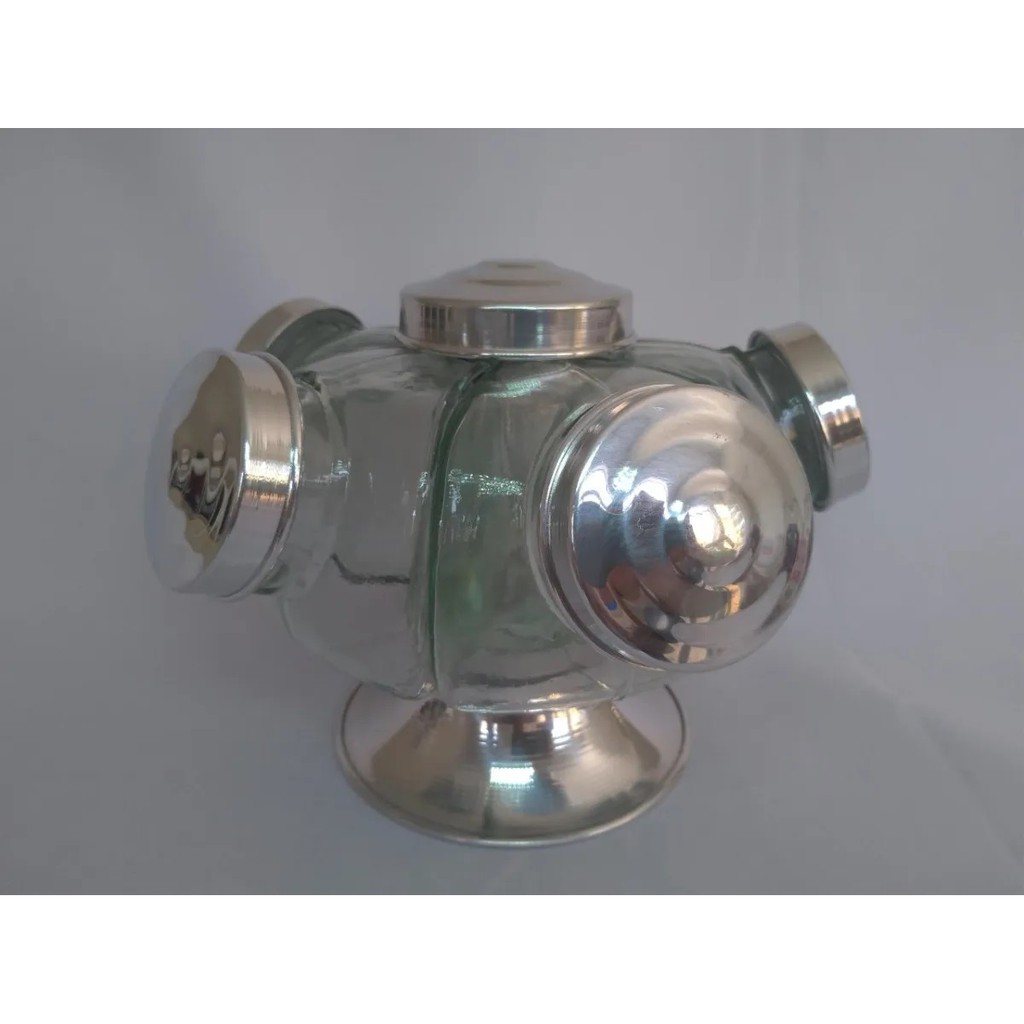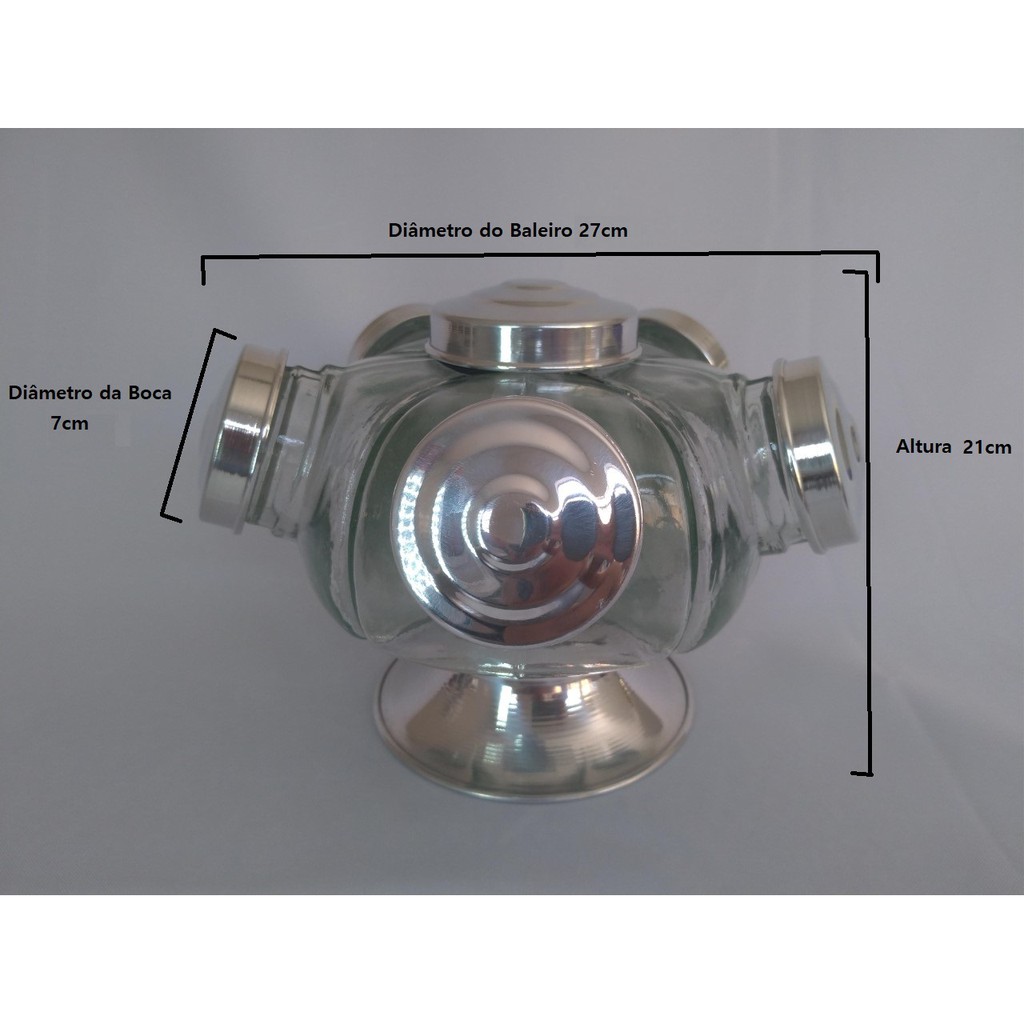 Baleiro Giratório Vidro 5 Potes 27cm Aluminio Bomboniere 500ml cada gomo.