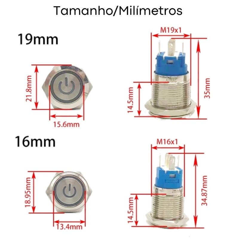 Botao Inox 19mm Liga Desliga ON OFF 12V 24V