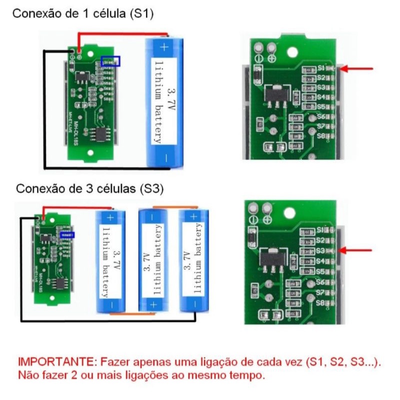 Indicador Nível De Bateria De Lítio 1S A 8S Capacidade de Carga 18650