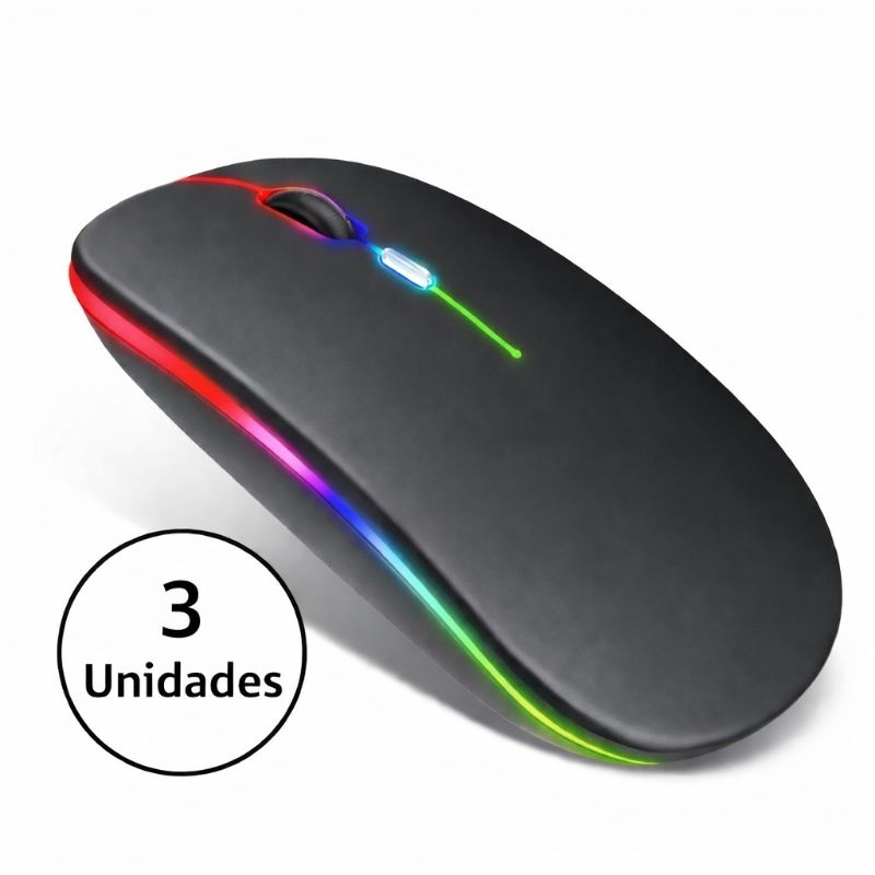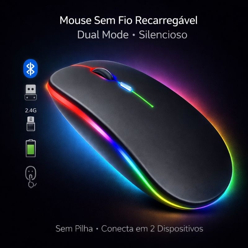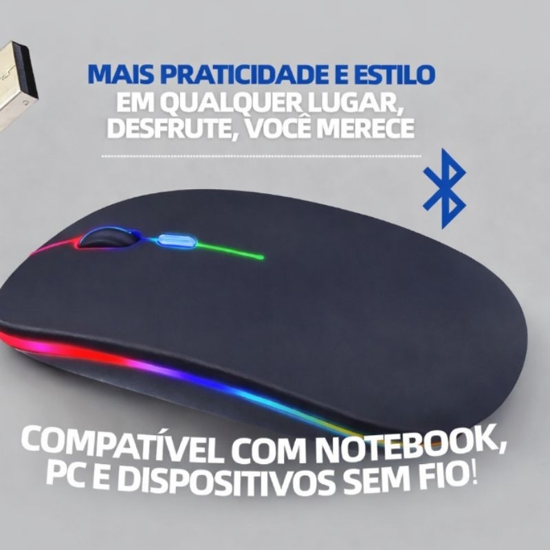 Mouse Sem Fio Recarregável RGB Bluetooth 5.2 + USB 2.4G para computador - Notebook - TV - tablet