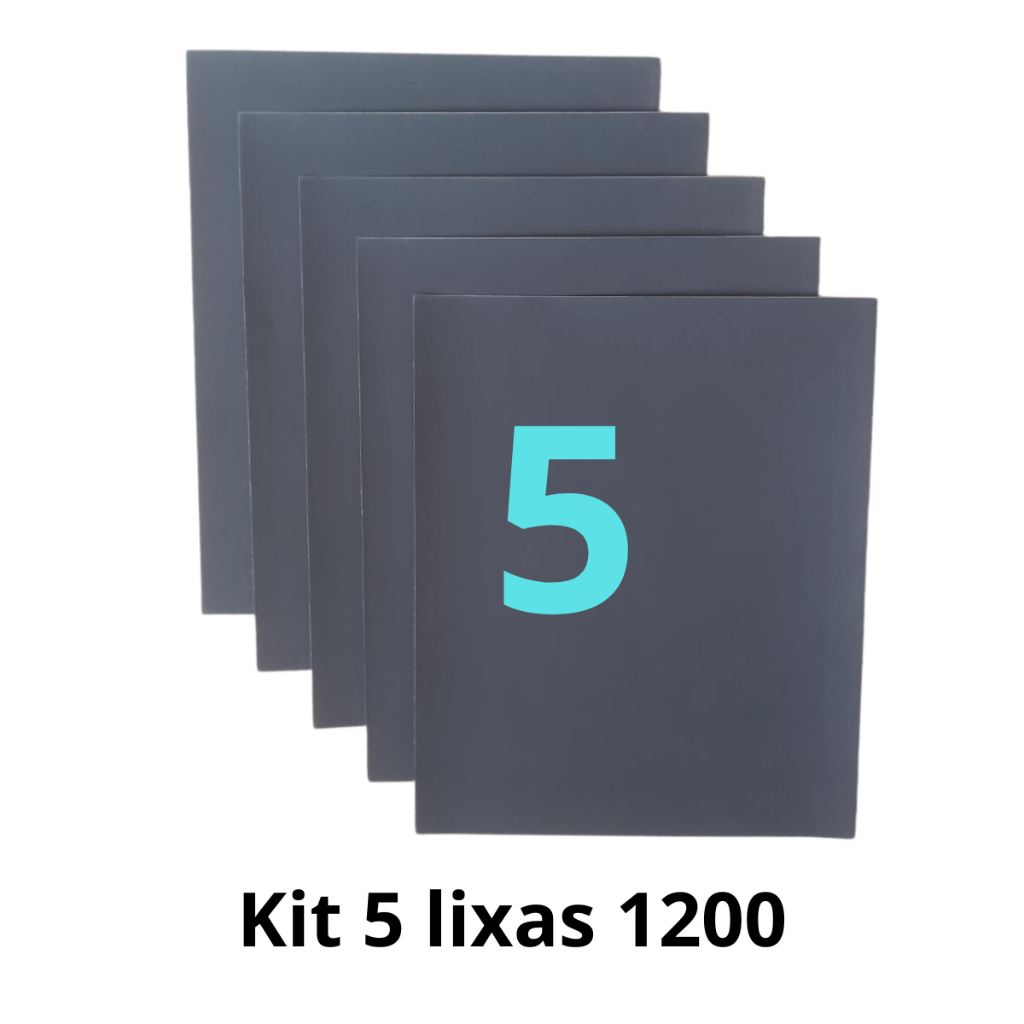Kit 1 a 5 lixas 1200 d'agua Grão Folha Polimento Lixamento Acabamento Superfície Plástico Metal Jogo