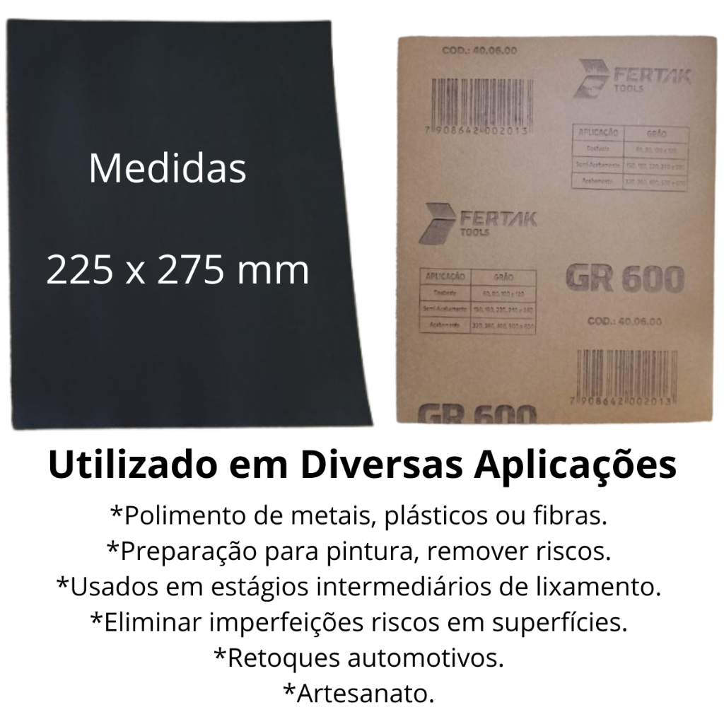 Lixa 600 D'água Grão kit 1 à 5 Folhas Polimento Lixadeira Acabamento Preparo Riscos Papel Plásticos