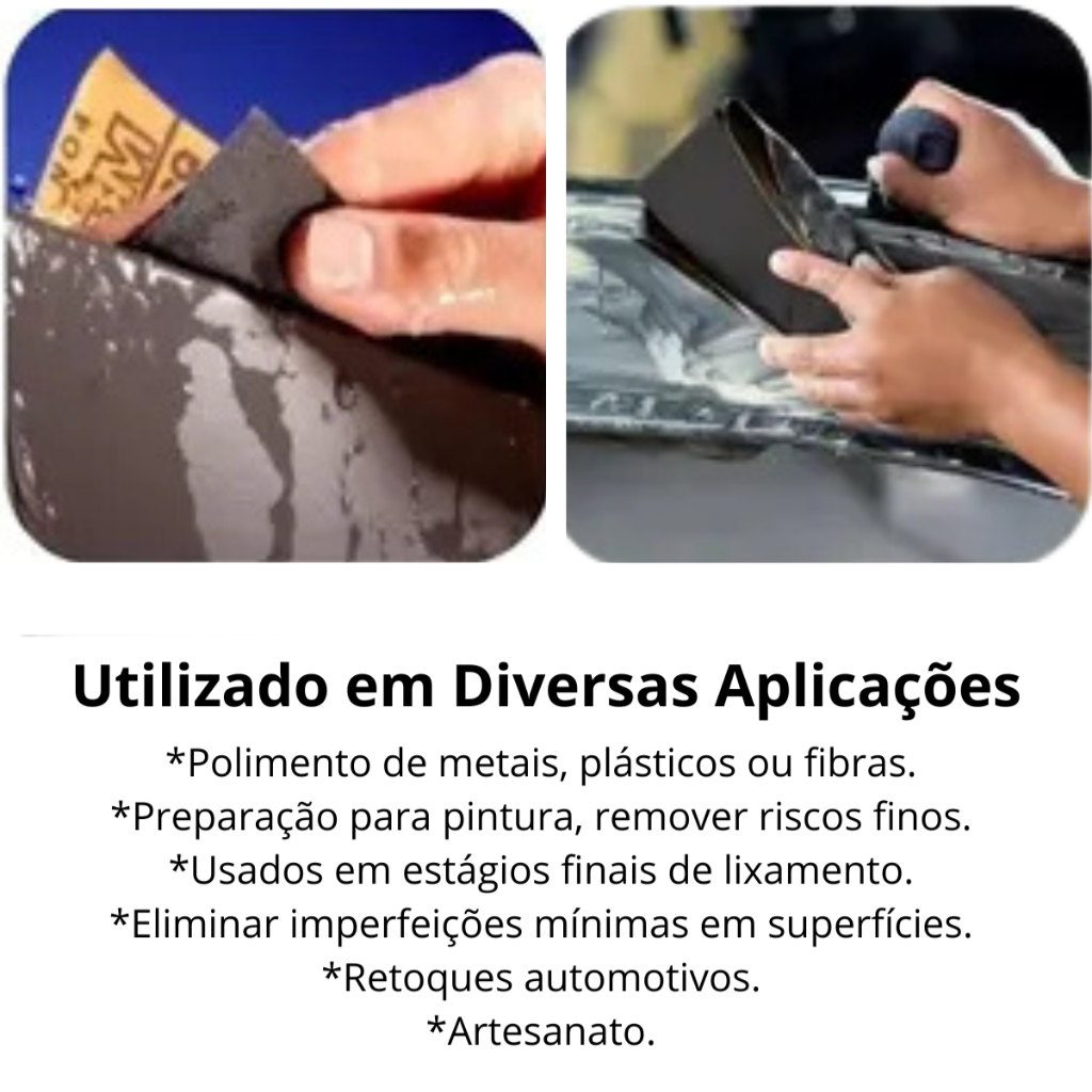 Kit 2 lixas 800 + 2 lixas 1200 d'água Grão Polimento Lixamento Molhada Úmida Plástico Metal Pintura