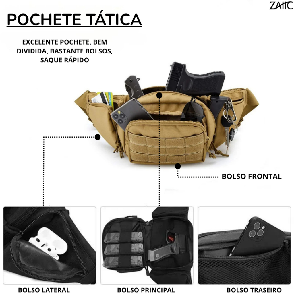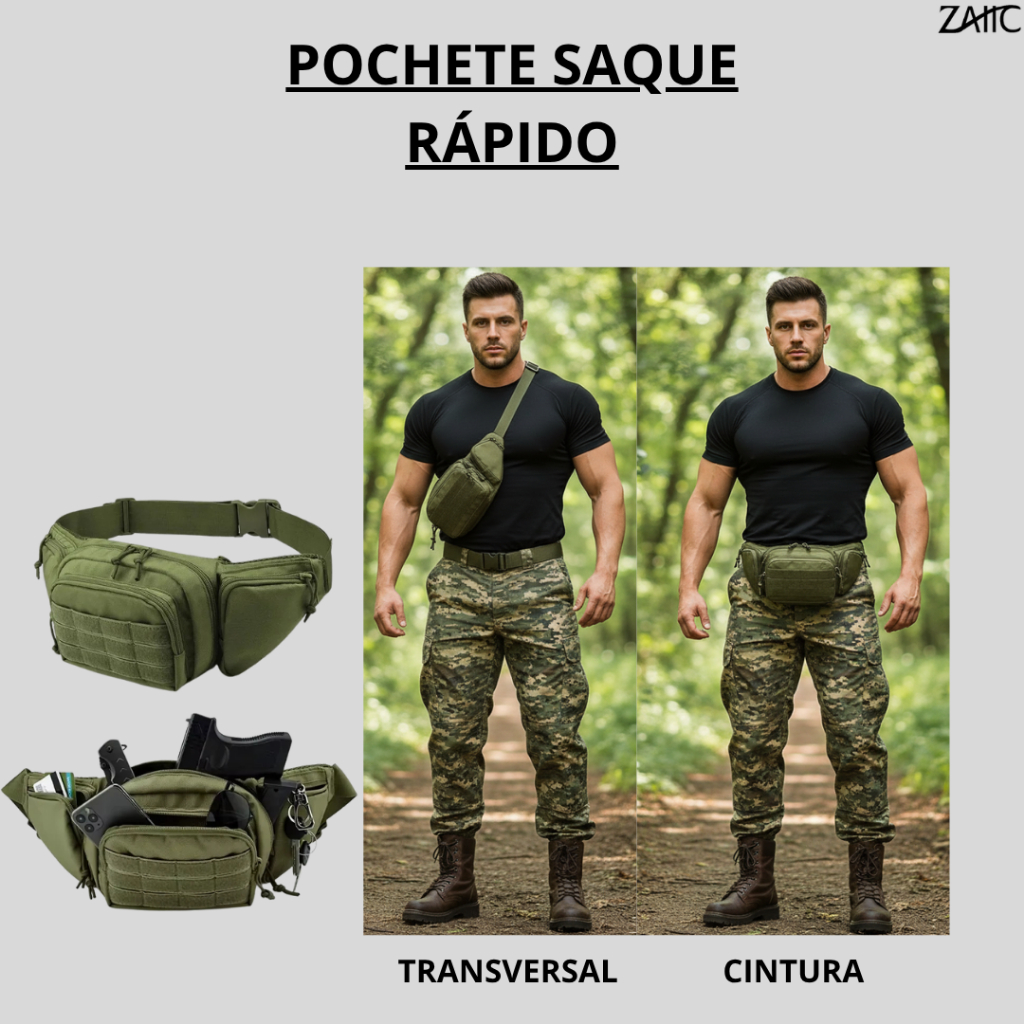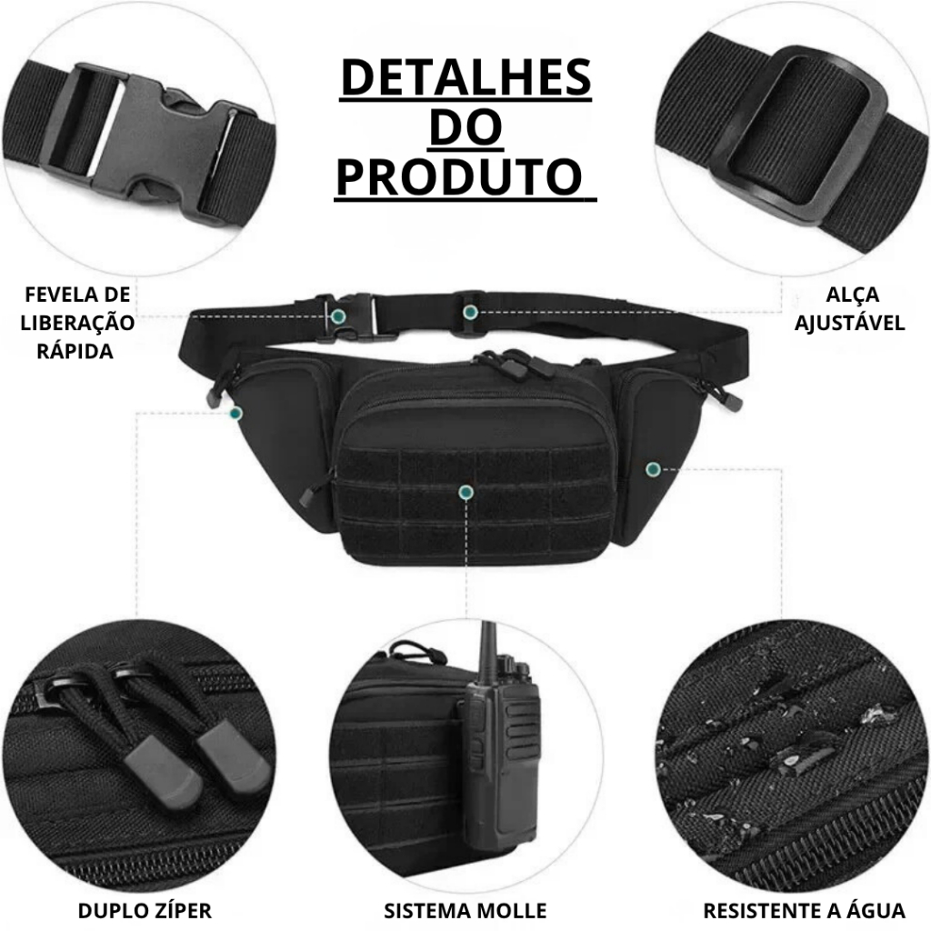 Pochete Bolsa Tática Militar Saque Rápido Compacta Impermeável e Reforçada
