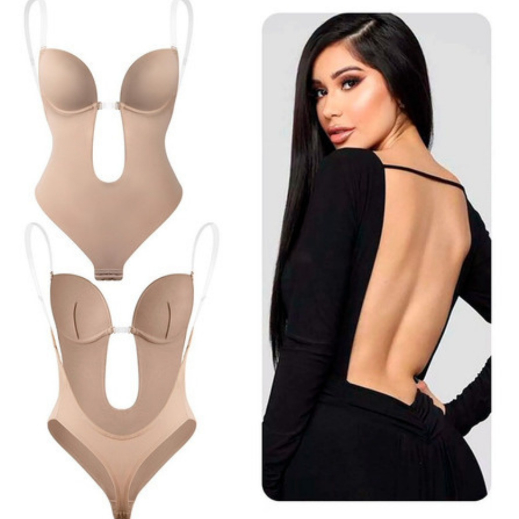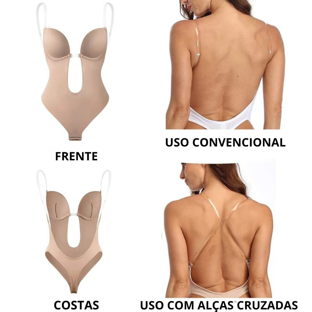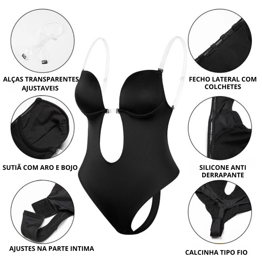 Body Modelador com Sutiã Integrado Costas Abertas Alças Transparente