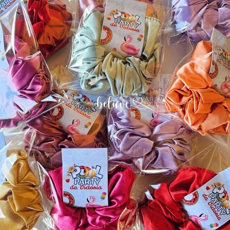 Xuxinha scrunchie de cetim com tag personalizada/Lembrancinha Personalizada/ Xuxa rabicó personalizado