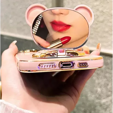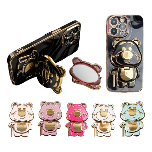 Suporte de Celular Pop Socket Urso 2 em 1 - Apoio e Espelho Rotativo 360° - Para todos os celulares