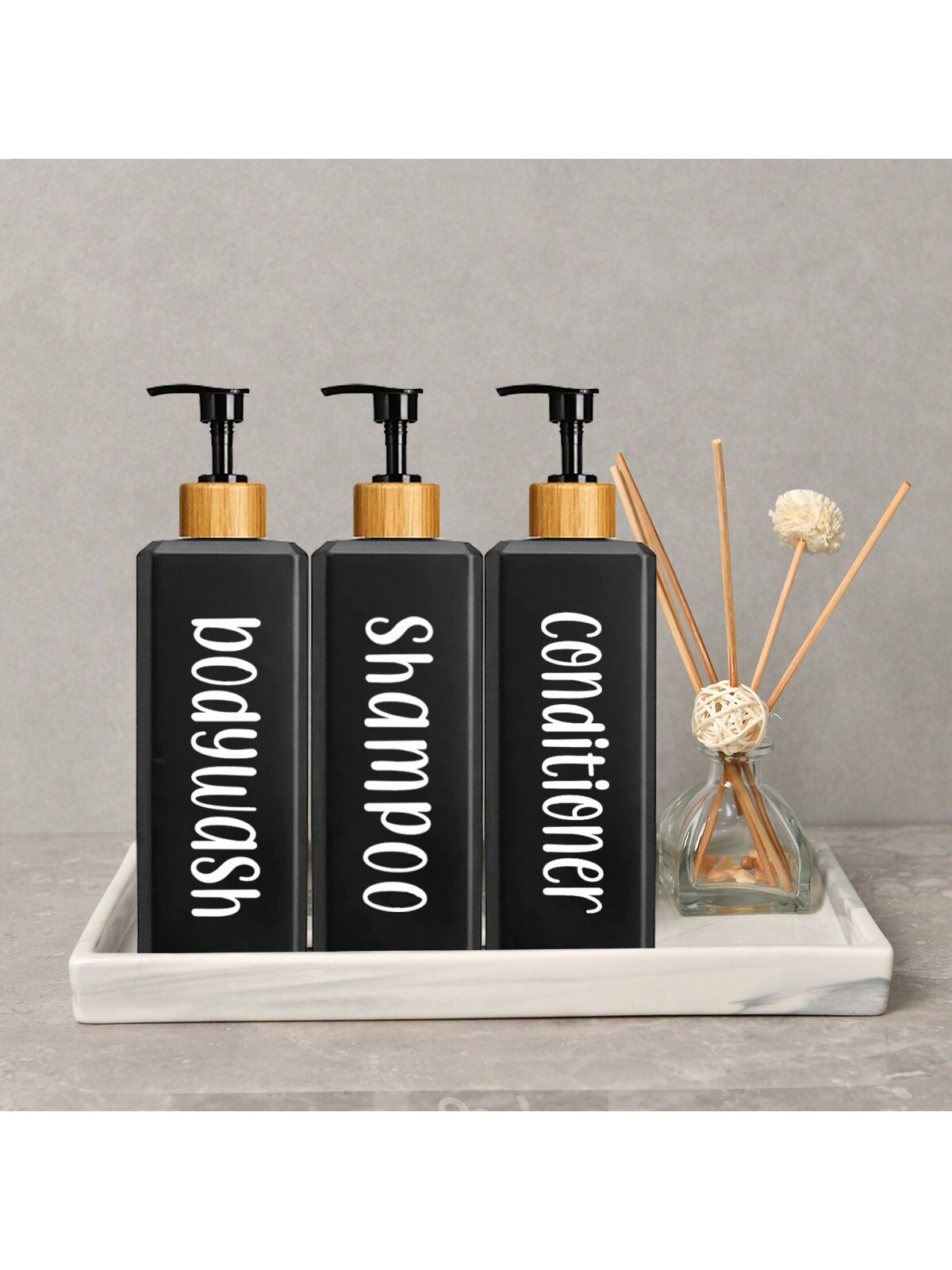 Dispensador De Chuveiro Conjunto De 3 Peças 500ml Garrafas Quadradas Shampoo Condicionador Lavagem Corporal Casa Banheir