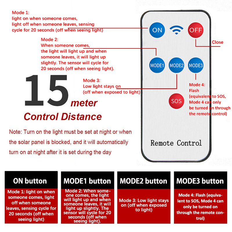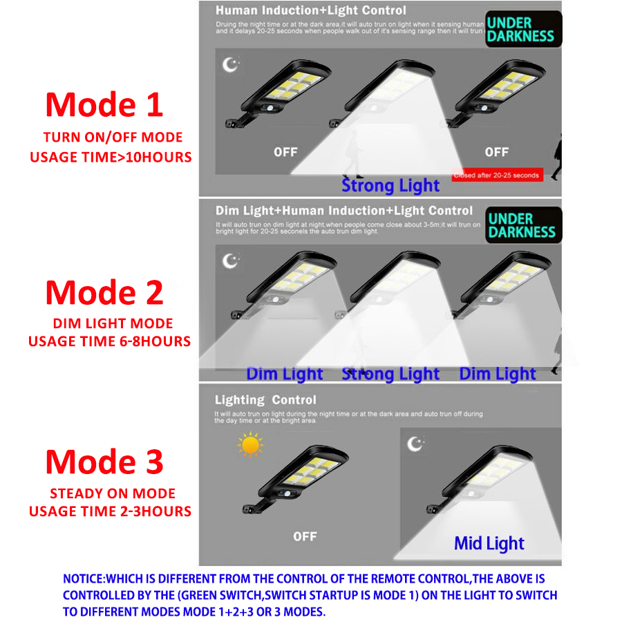 Luz Solar Taman Street LED com Sensor de Movimento e Controle Remoto, Iluminação Exterior à Prova d'Água