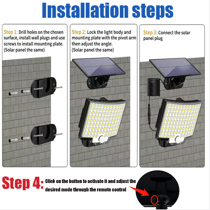 106LED Luz Solar Super Brilhante Lâmpada De Iluminação De Parede Externa Tipo De Movimento Dividido Forte Energia IP65 À