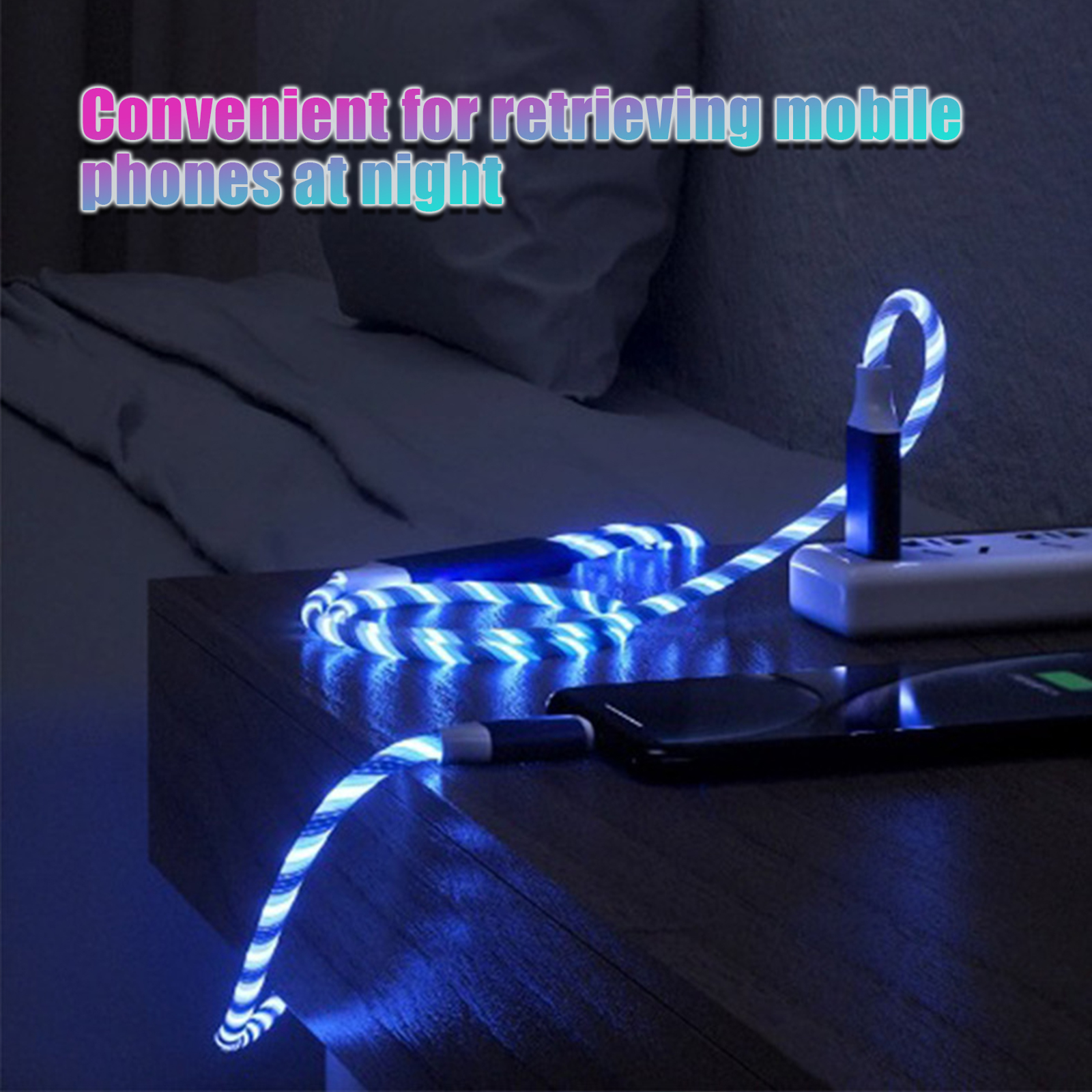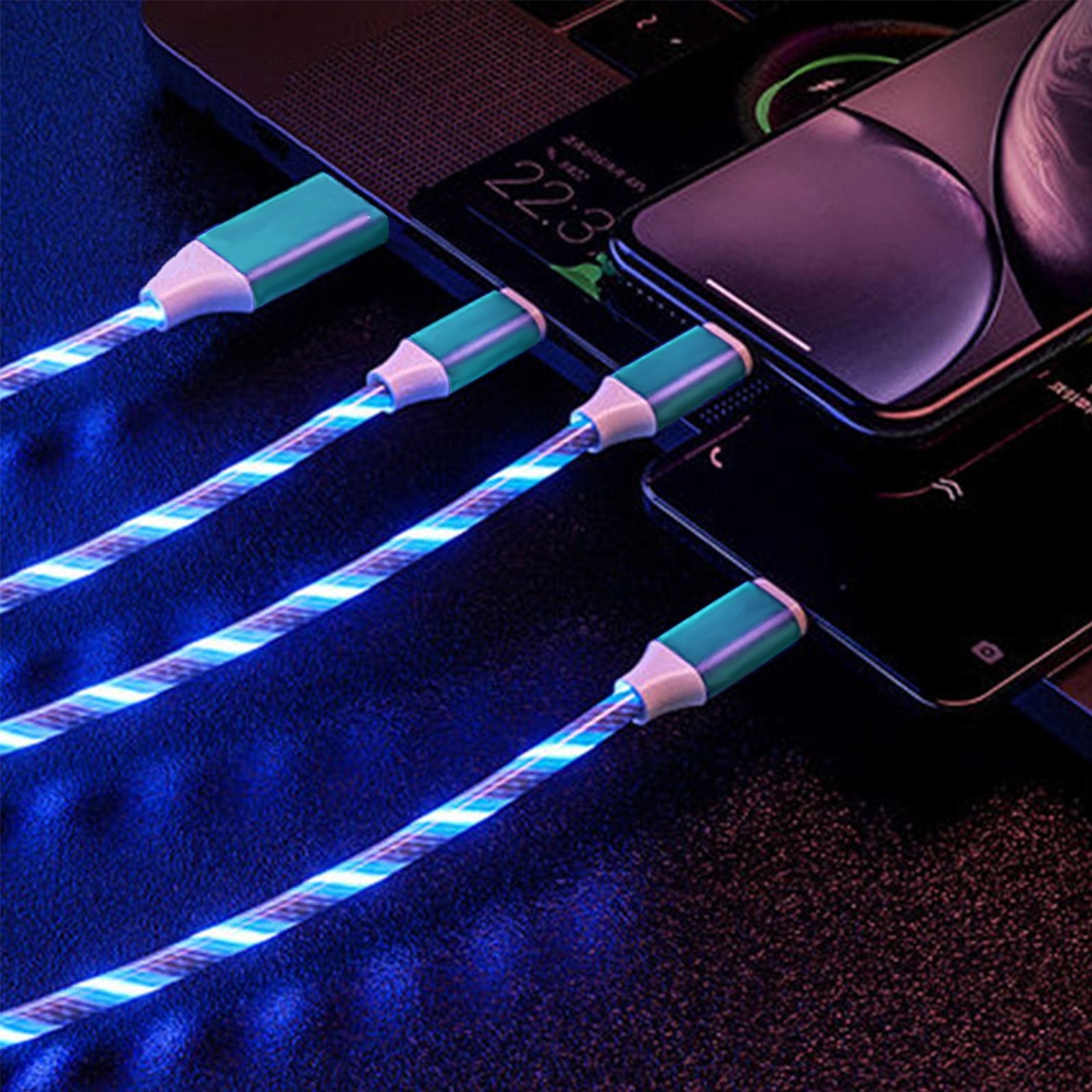 Cabo de carregamento rápido colorido em LED RGB de 3 em 1, tipo C e micro USB