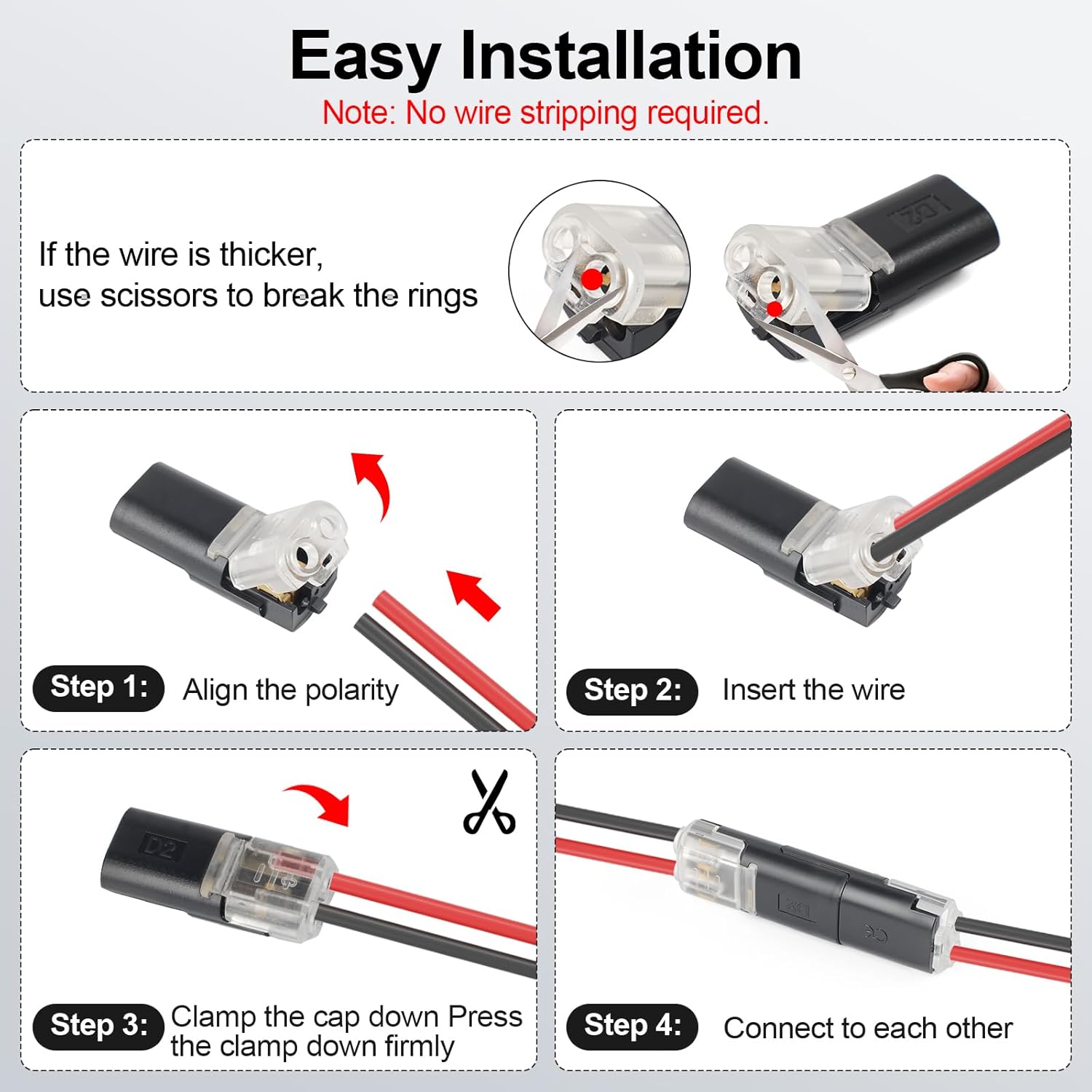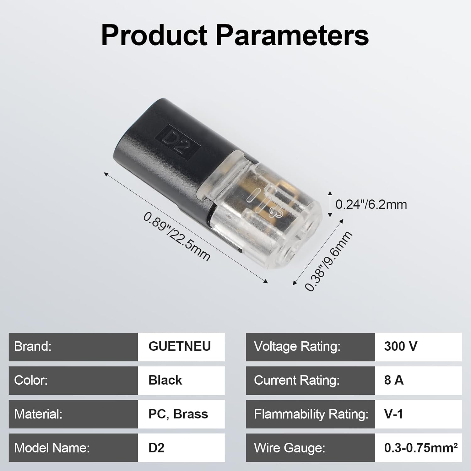 Conectores de fio rápido de dois pinos em ponte, terminais de plugue de dupla linha sem stripping necessários, contato