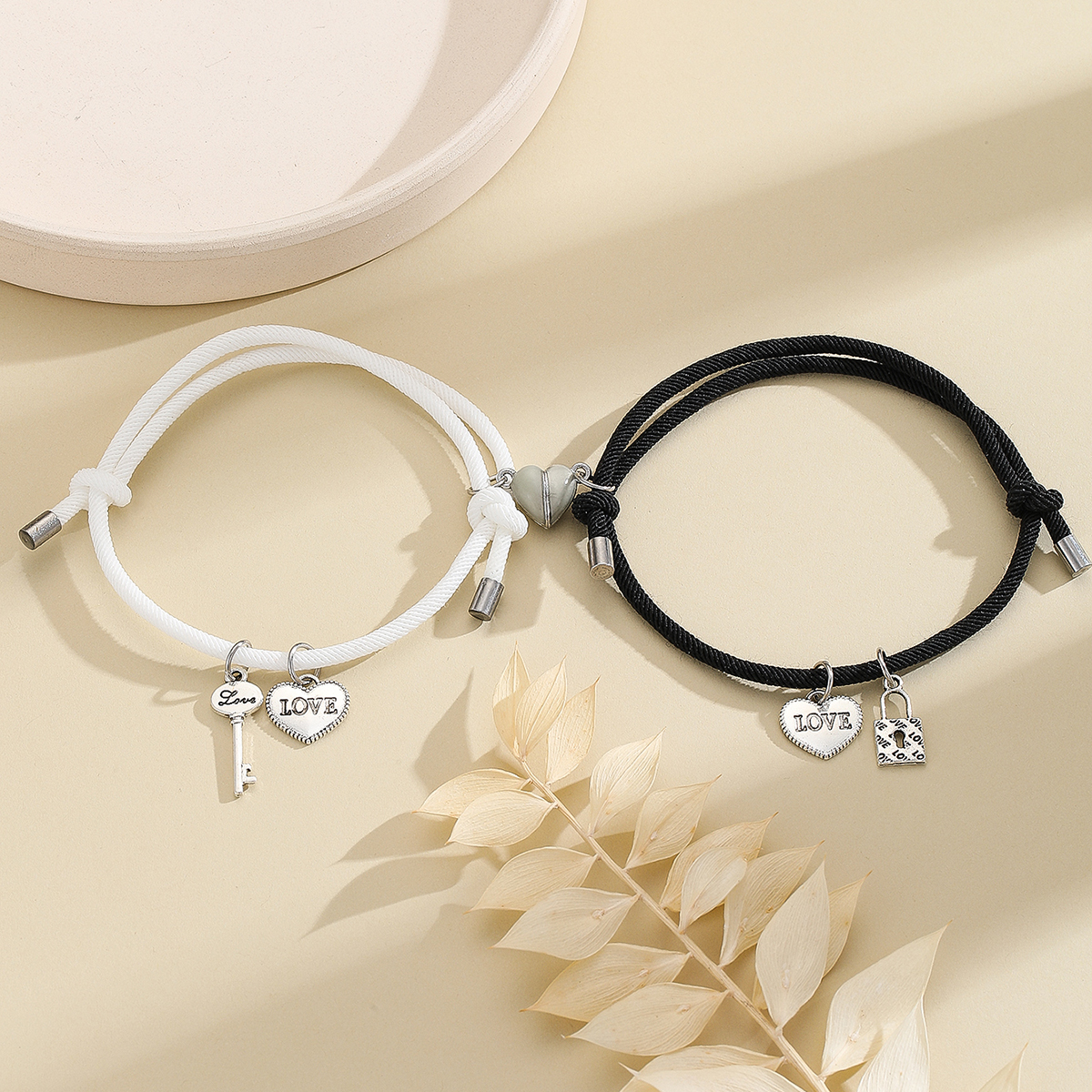 Novo par de pulseiras de cordão com pingentes em forma de coração, prata, fechadura e chave, luminoso Love, para casais