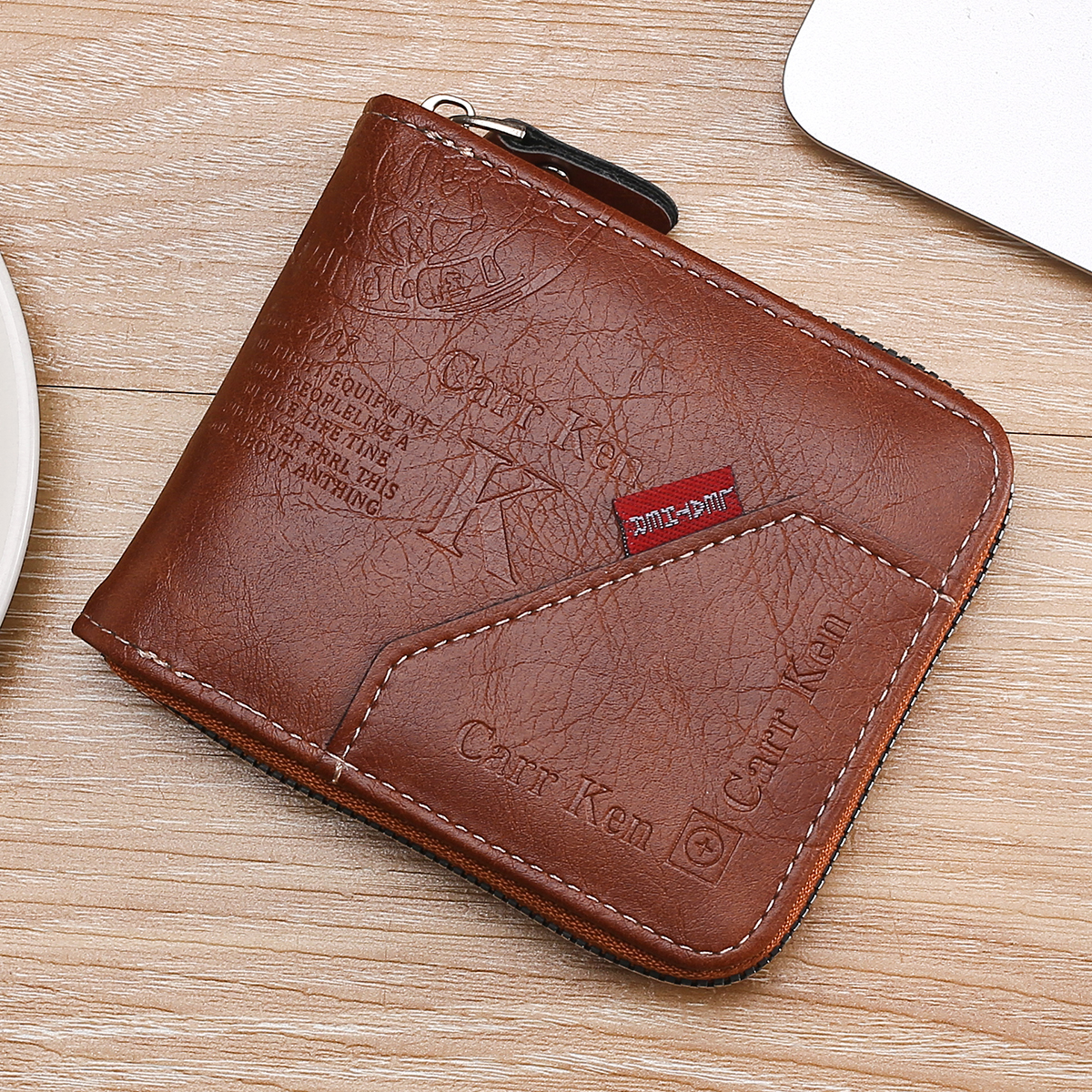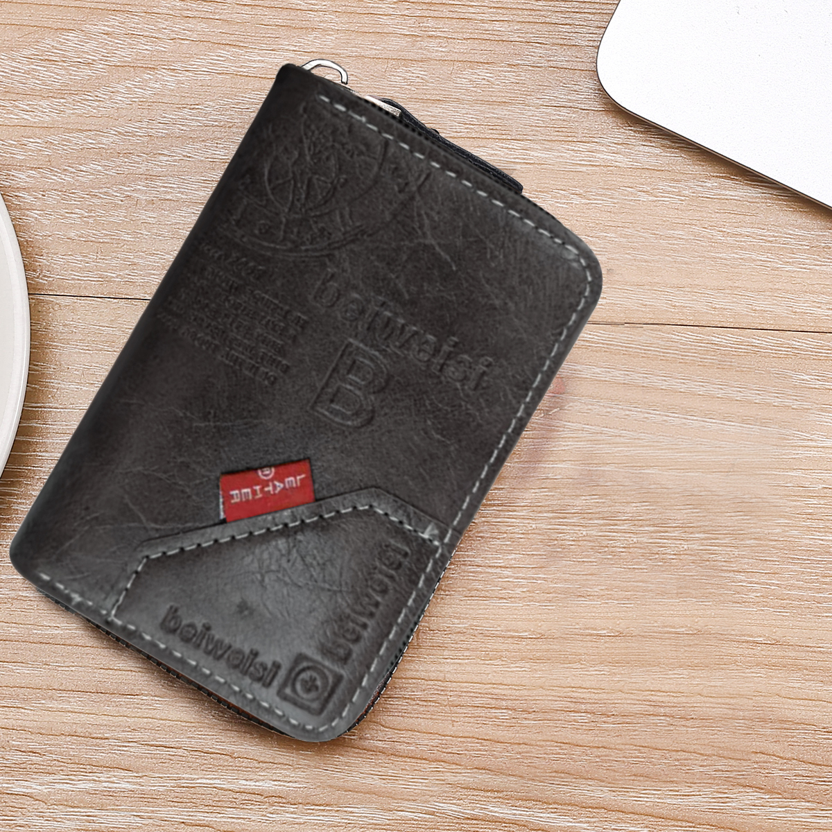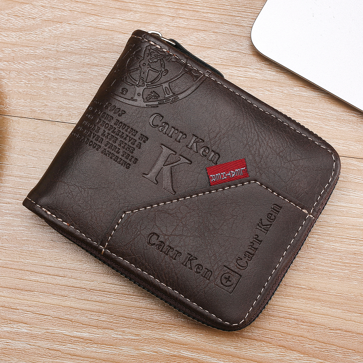 Carteira masculina curta com zíper, moderna e multifuncional, ideal para negócios e presente para rapazes.
