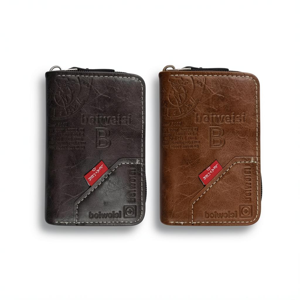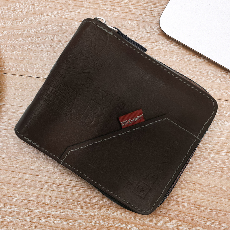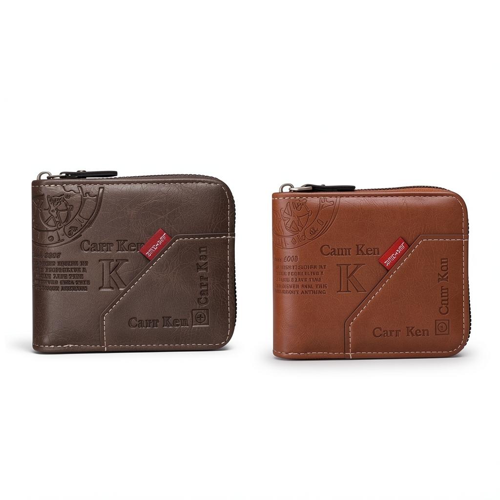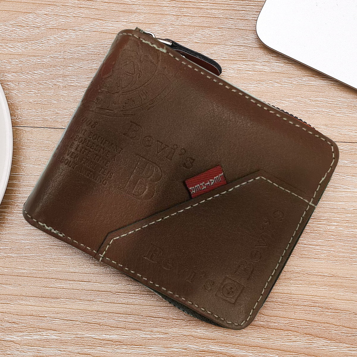 Carteira masculina curta com zíper, moderna e multifuncional, ideal para negócios e presente para rapazes.