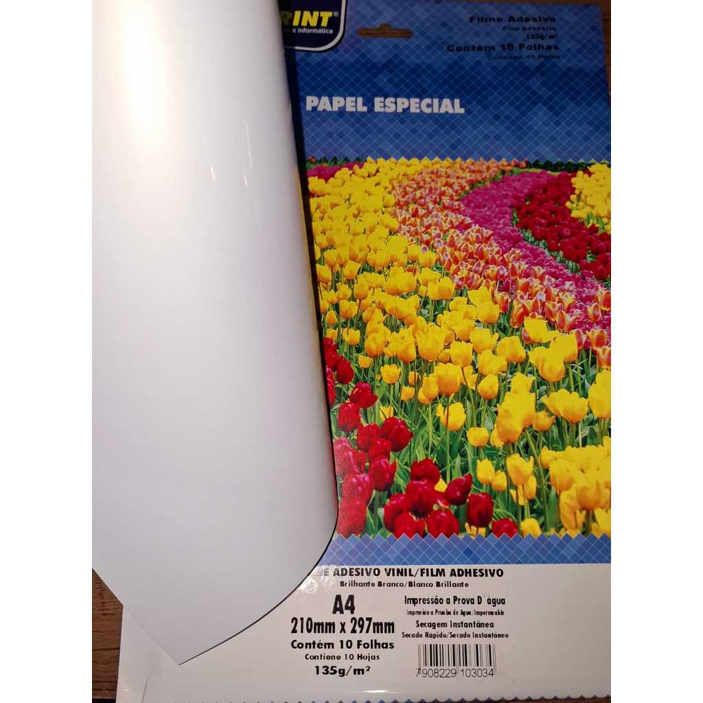 VINIL ADESIVO branco A PROVA D'ÁGUA MASTERPRINT 135g A4 – 10 folhas