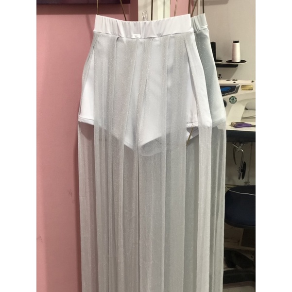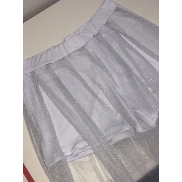 short com saia longa de tule estilo réveillon praia