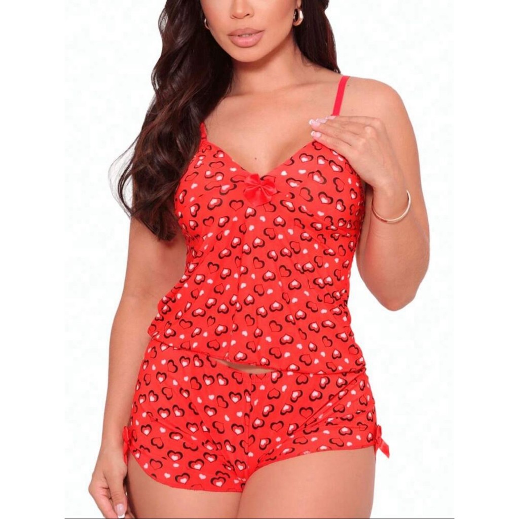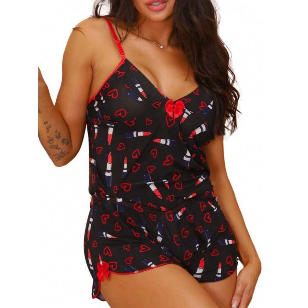 Kit com 2 Conjuntos de Baby Doll Feminino em Liganete Estampado Short Feminino Linha Noite.