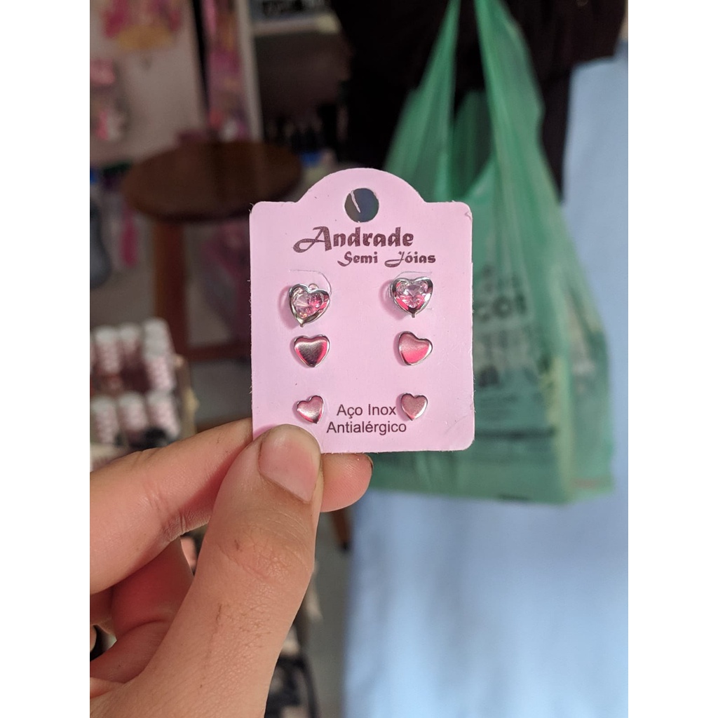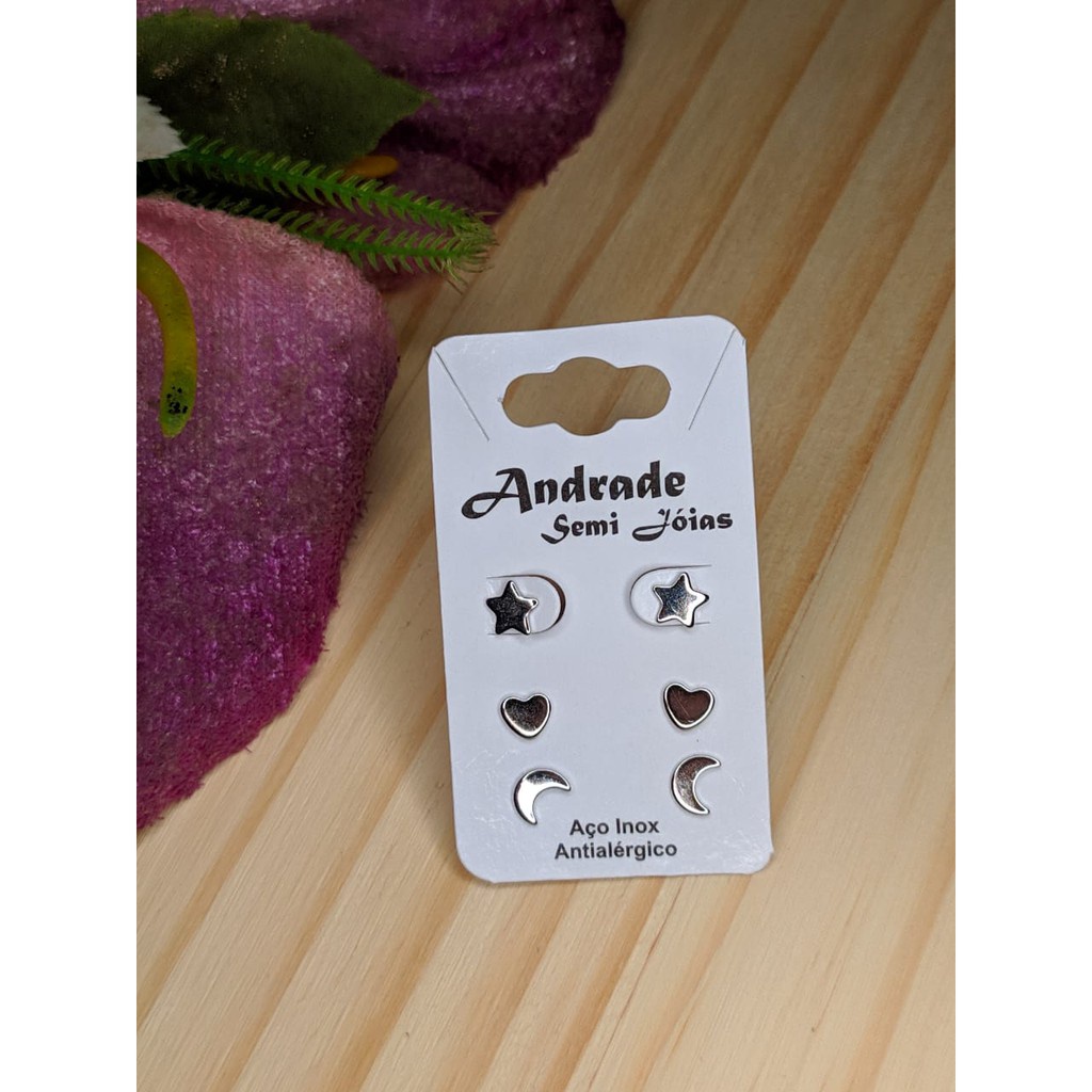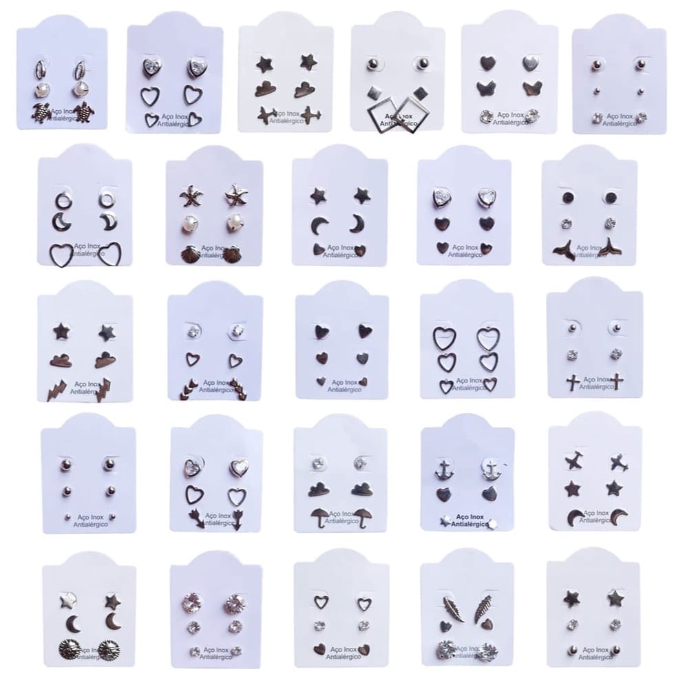 24 Pares Brinco Aço Inox Antialérgico Estrela Coração Zircônia Modelos Variados Atacado 3 Furos Lote de Brincos