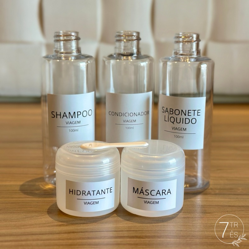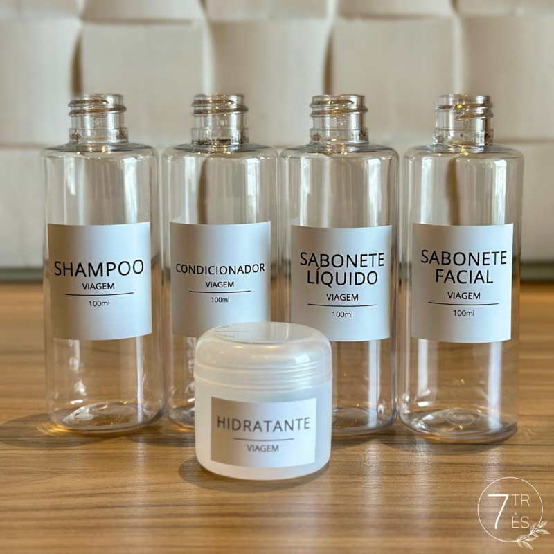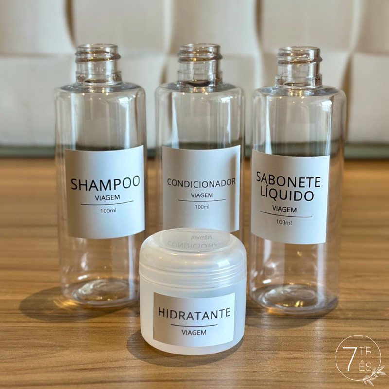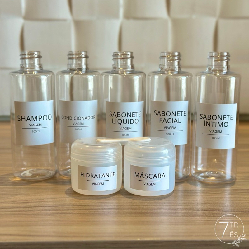 Kit viagem - frascos de 100ml para viagem + potinho 30ml