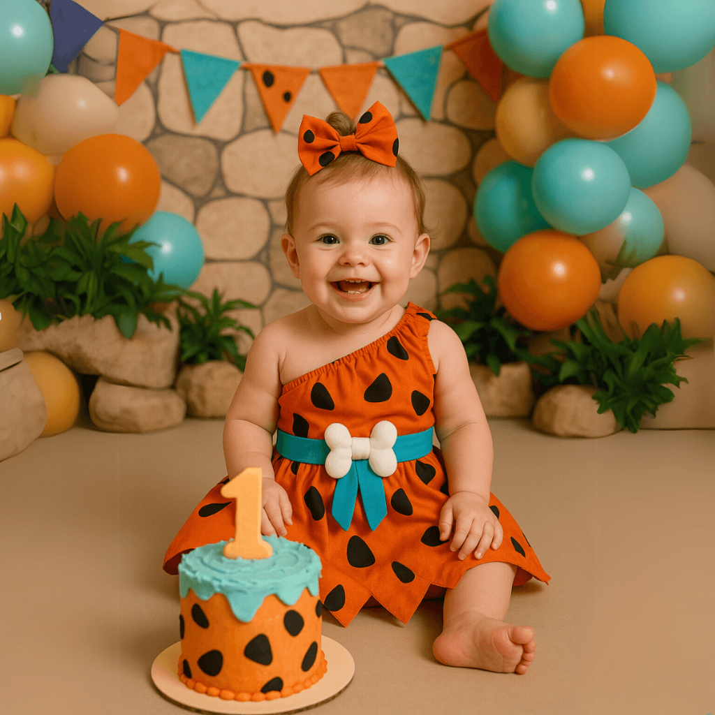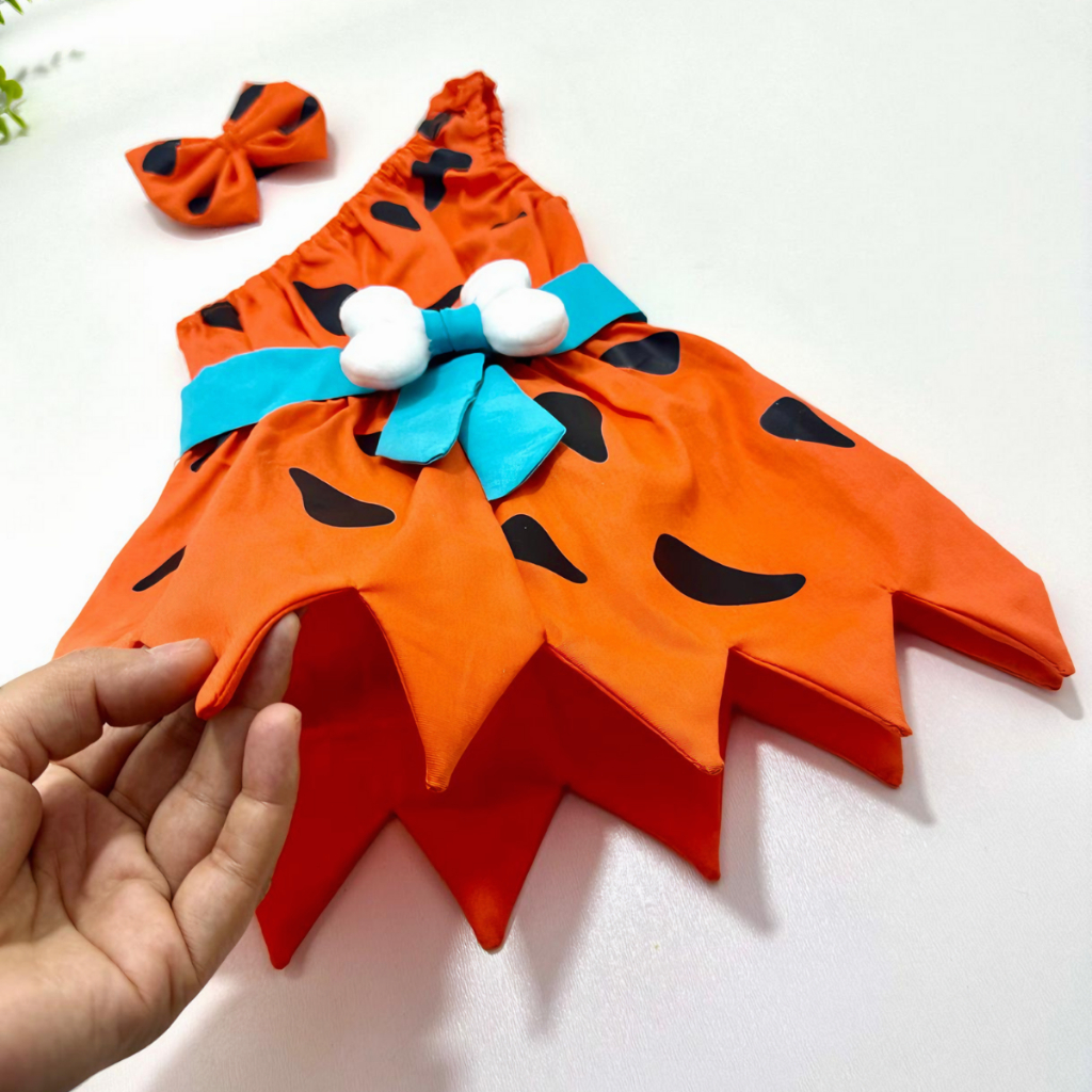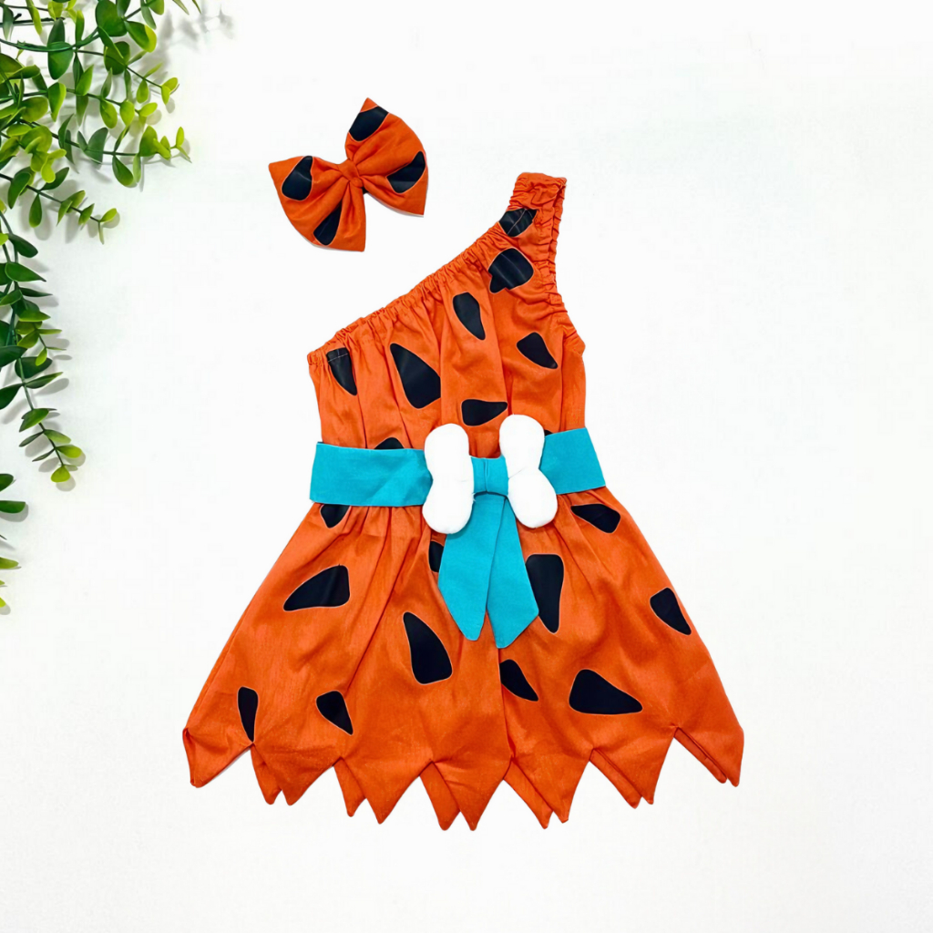 Jardineira Fantasia Temático Fotos Pedrita Flintstones Macacão Body Bebê Cinto com Ossinho