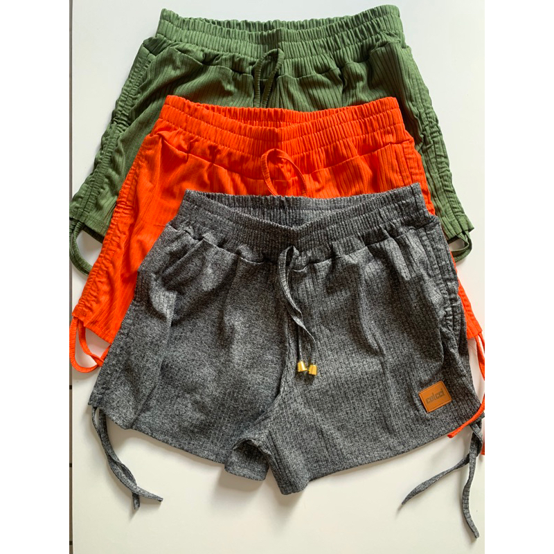Short Canelado Feminino kit 3 Peças com Amarração