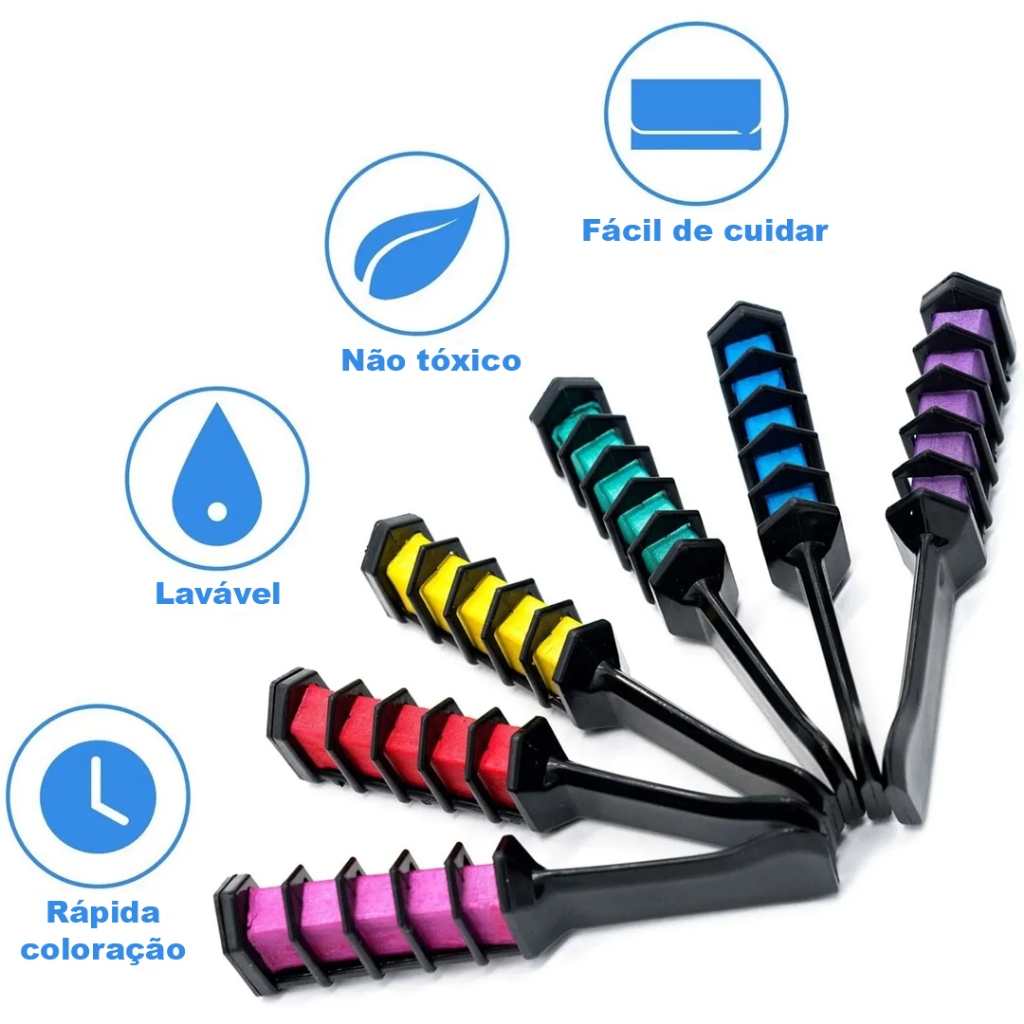Tinta Cabelo Giz Temporária Pente Com 6 Cores