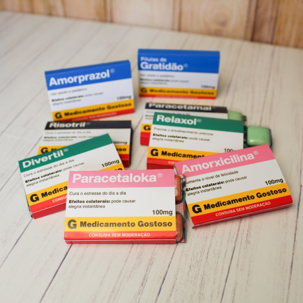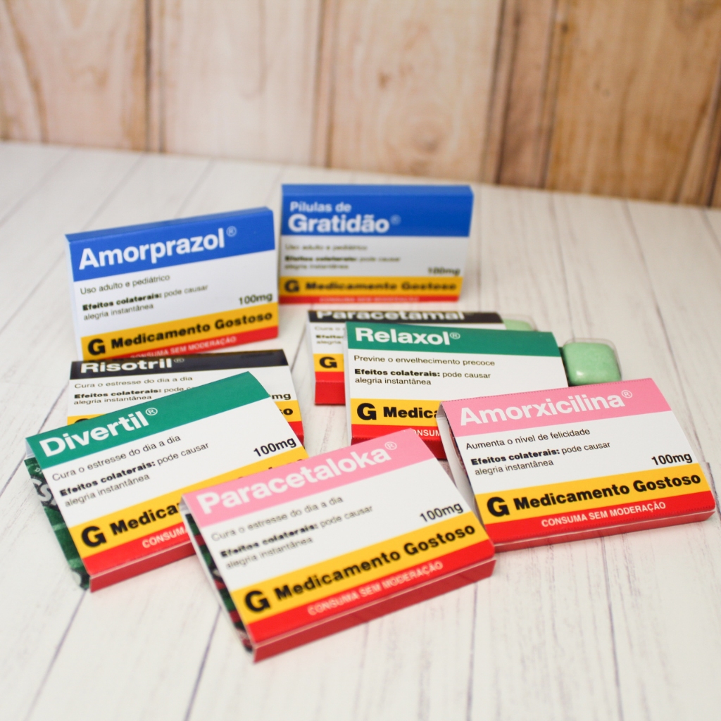 Remedinhos Agradecimento Divertidas Pílulas Felicidade Festa Mimos Caixinha 4 Chicletes Personalizado