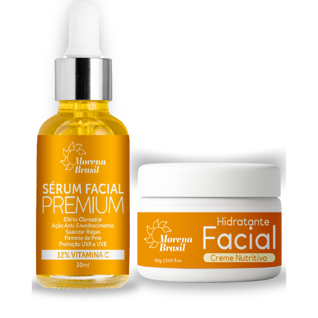 🔆 Kit Skincare Morena Brasil 🔆 – Vitamina C Potente | Sérum + Creme para Rosto 🍊🔆