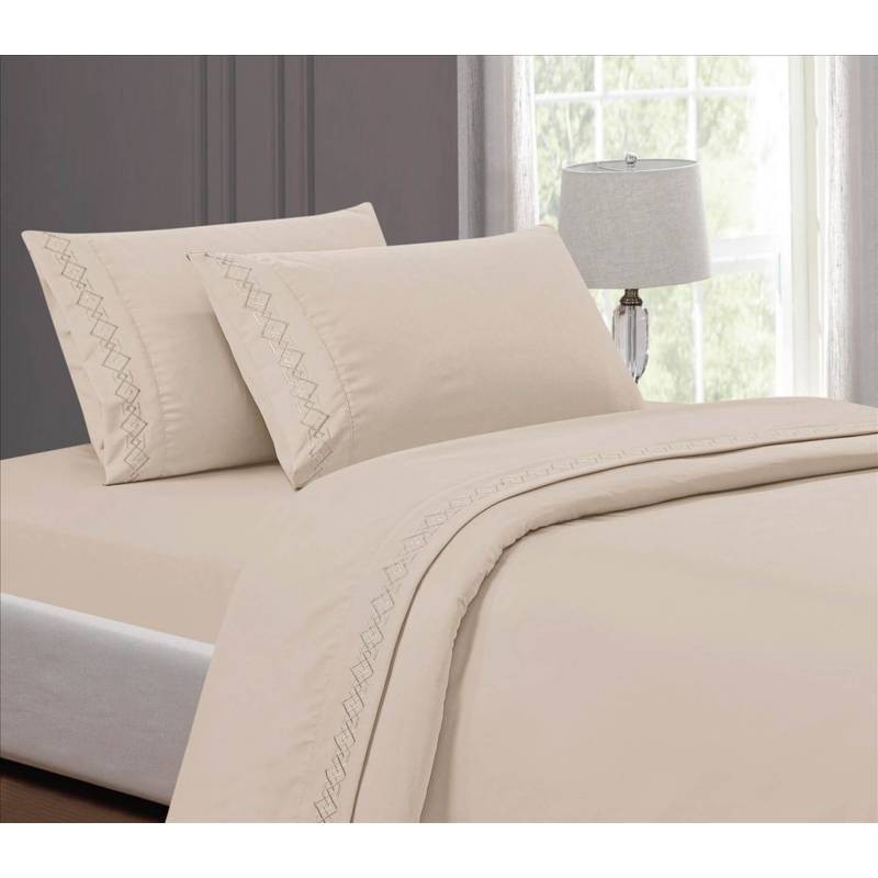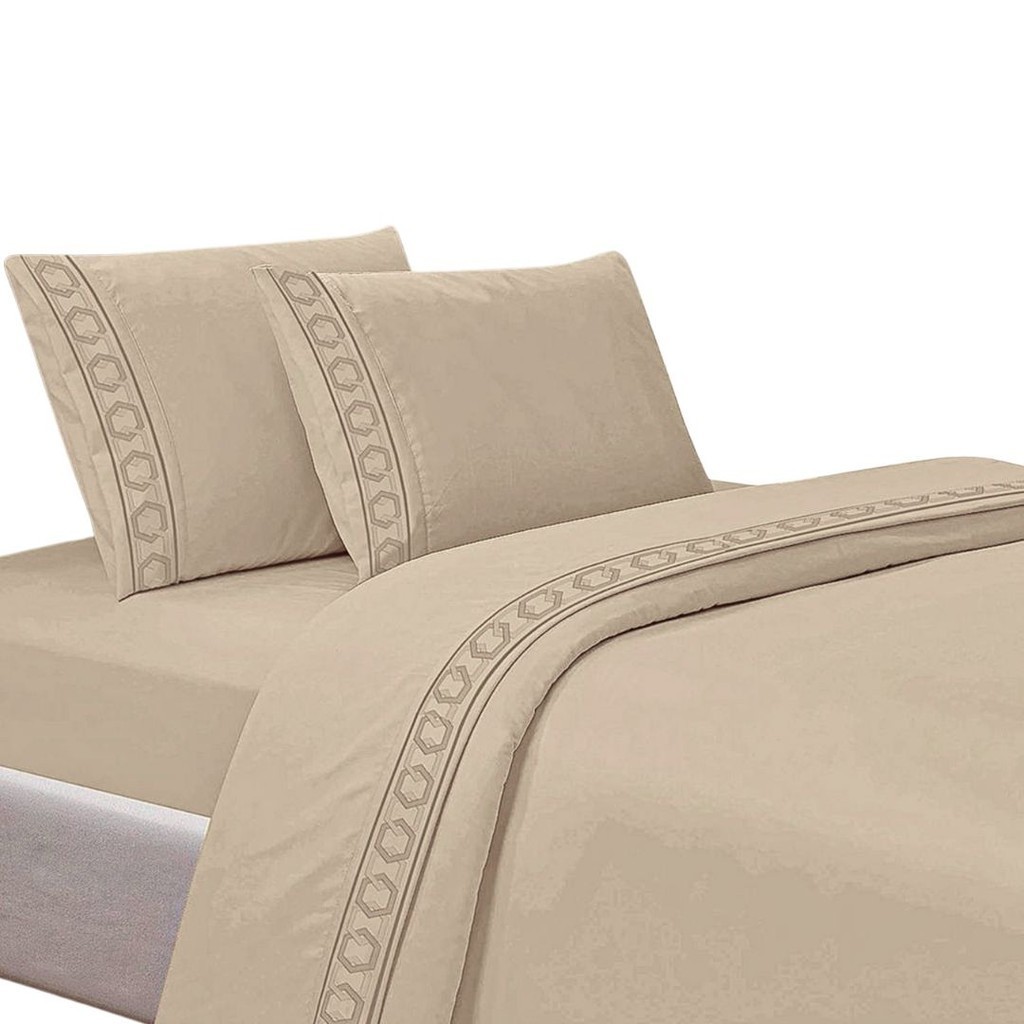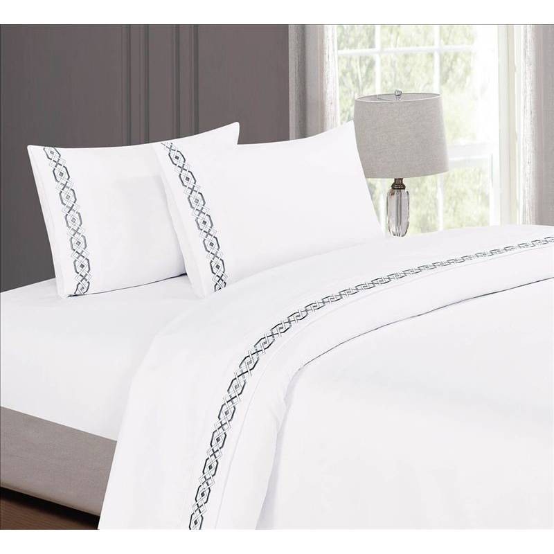 Jogo de cama bordado 4 peças tecido antibactericida Algodão