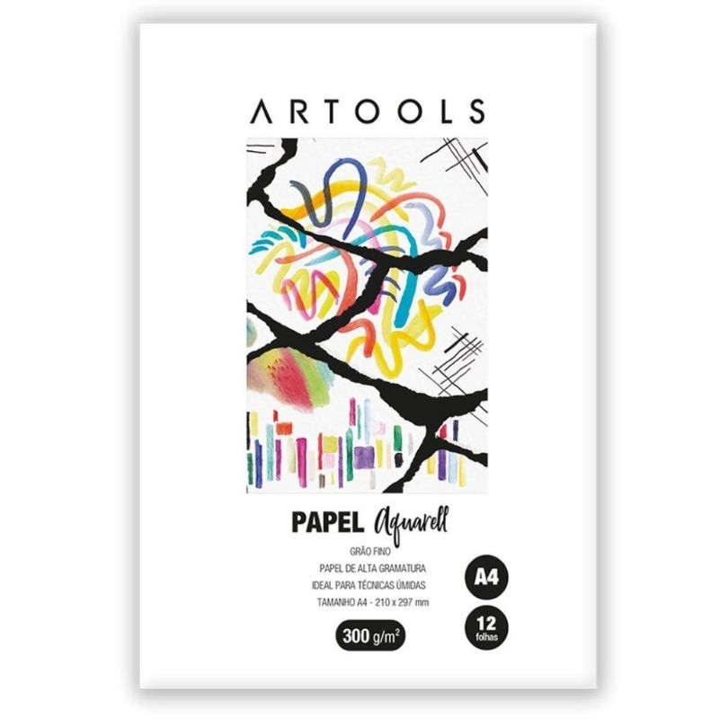 Bloco Aquarela Aquarell Branco 300 g/m² Grain Fine A-4 21,0 x 29,7 cm com 12 Folhas Artools