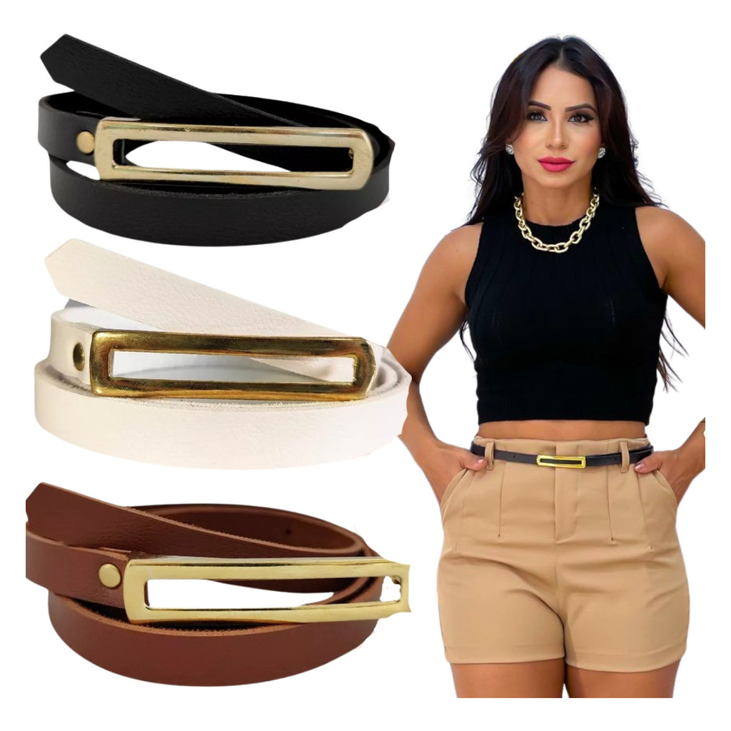 Kit Cintos Femininos Plus Size Retangular Fino Fivela Dourada