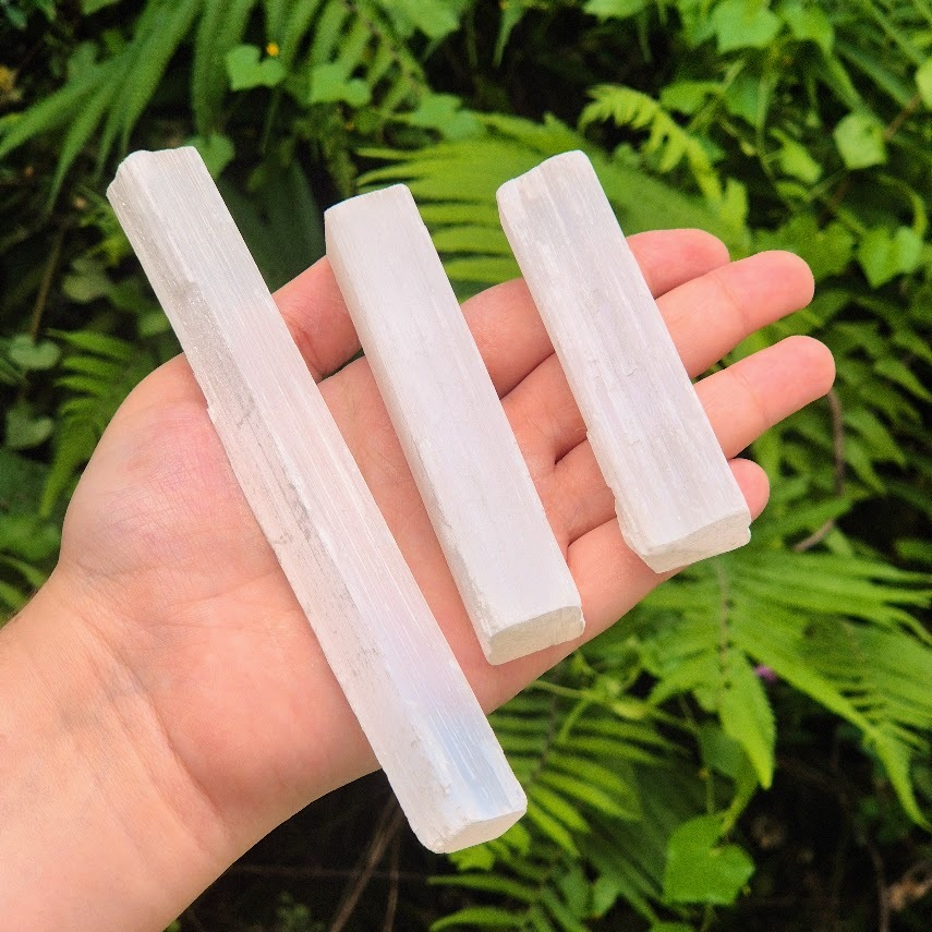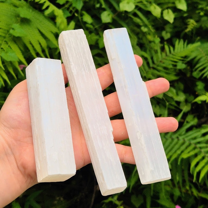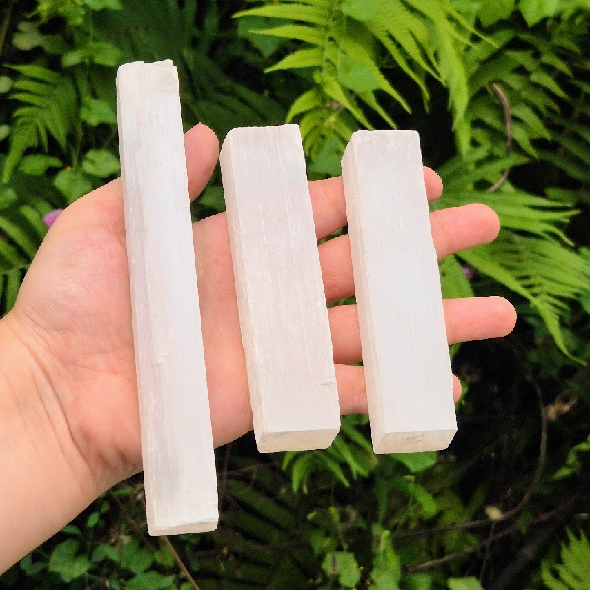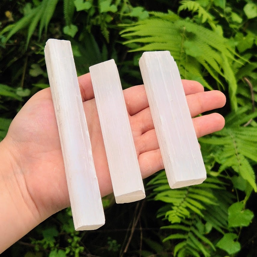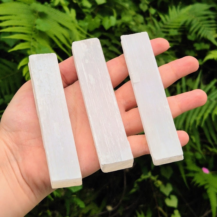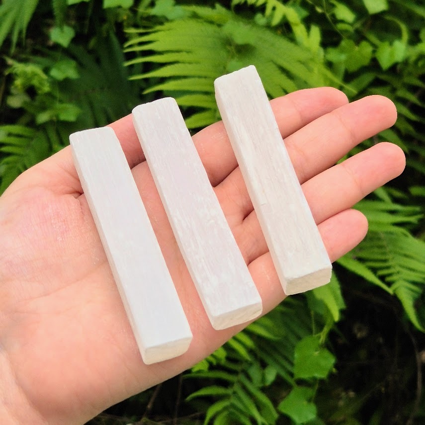 Bastão Barra de Selenita Branca Limpeza Purificação Pedra Bruta Chakras