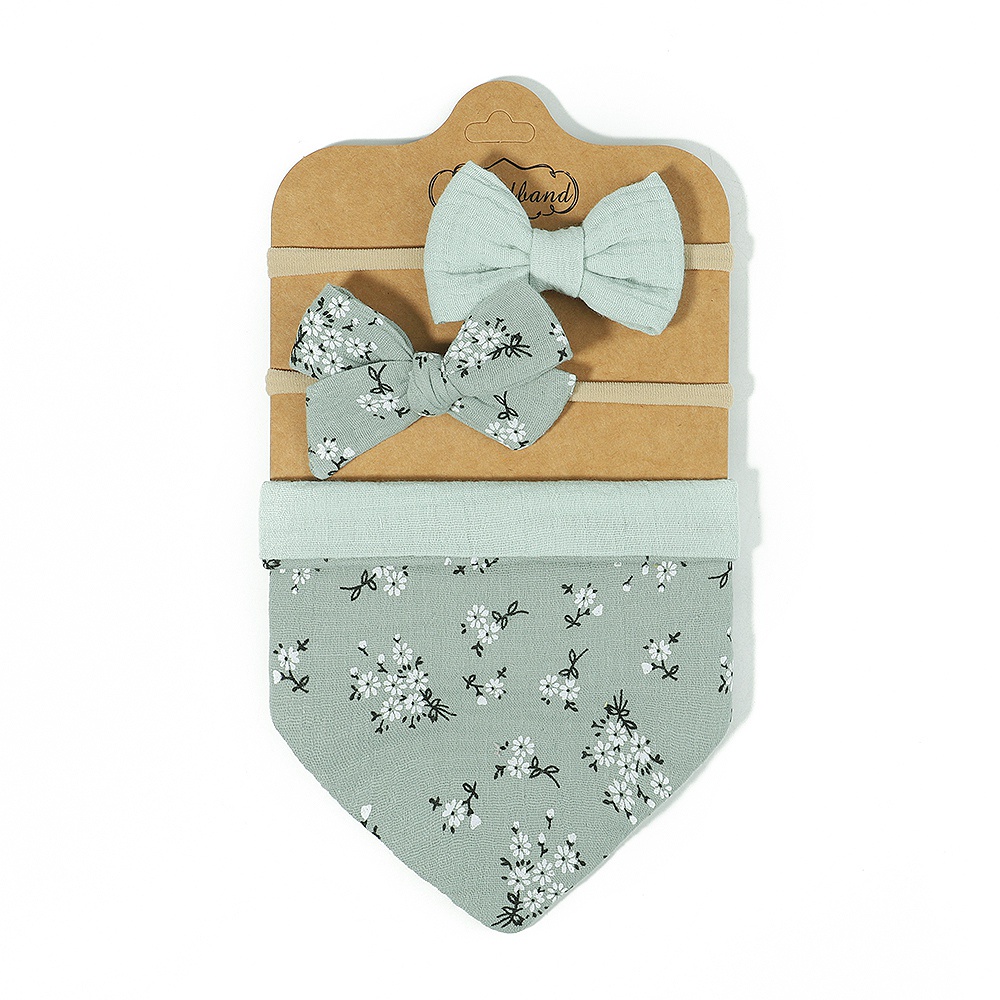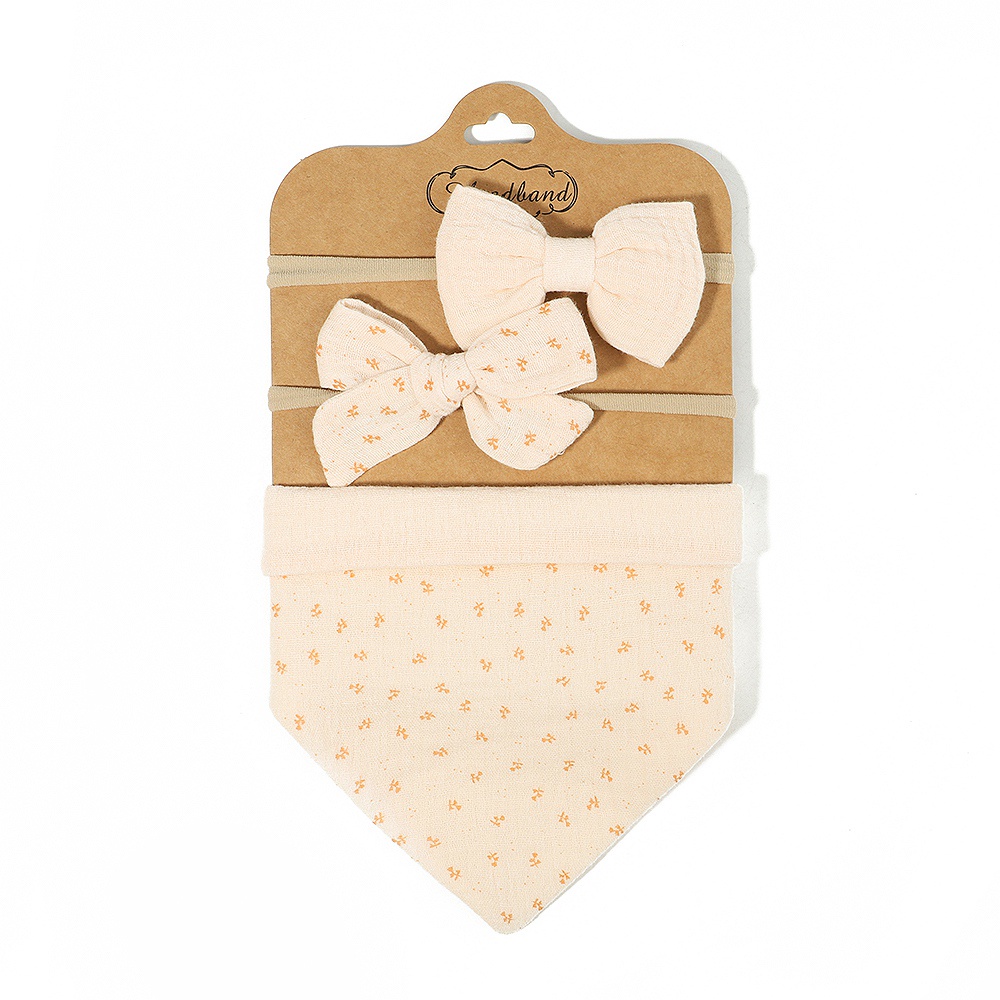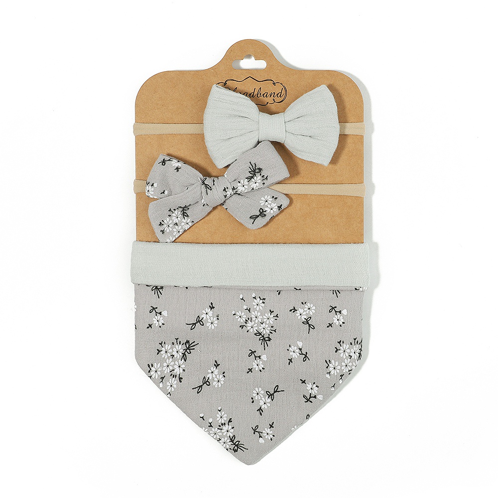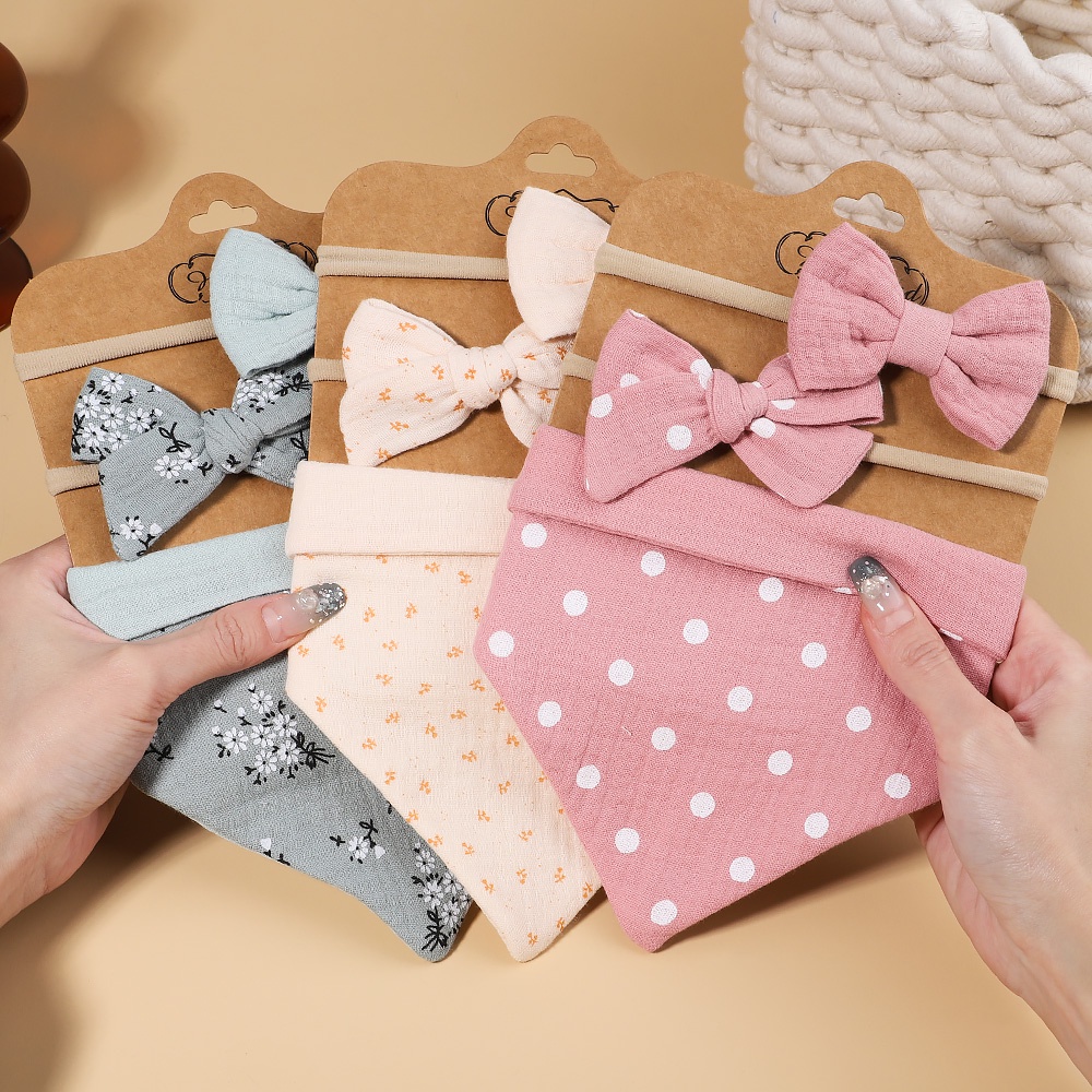 3Pcs/Conjunto Muslin Cotton Baby Bibs Recém Nascido Laços Faixa De Cabeça Triângulo Saliva Toalha Infantil Menino Menina Alimentando Burp Cloth Hair Accessories