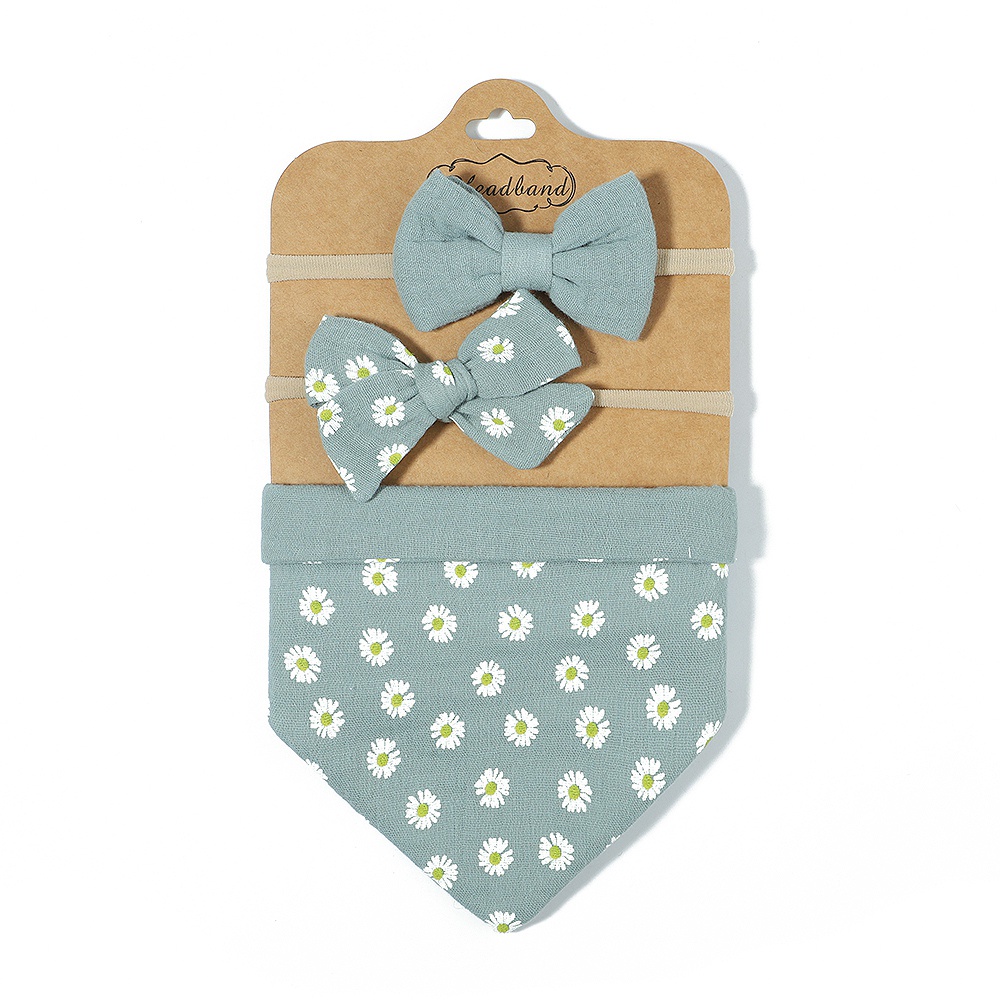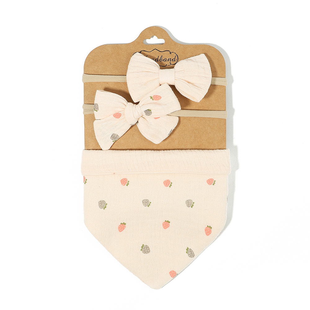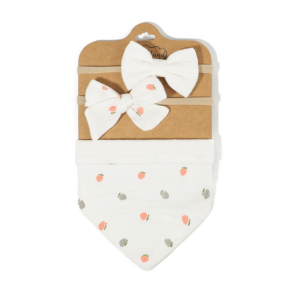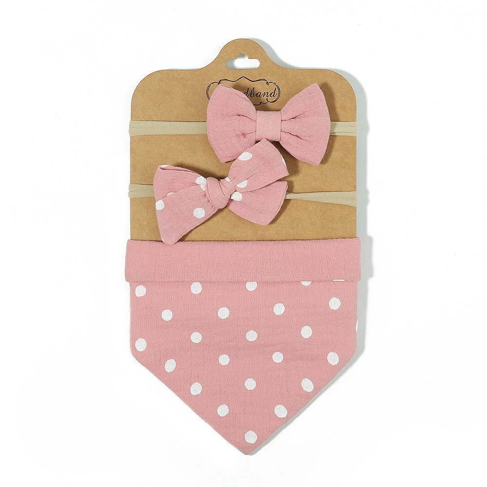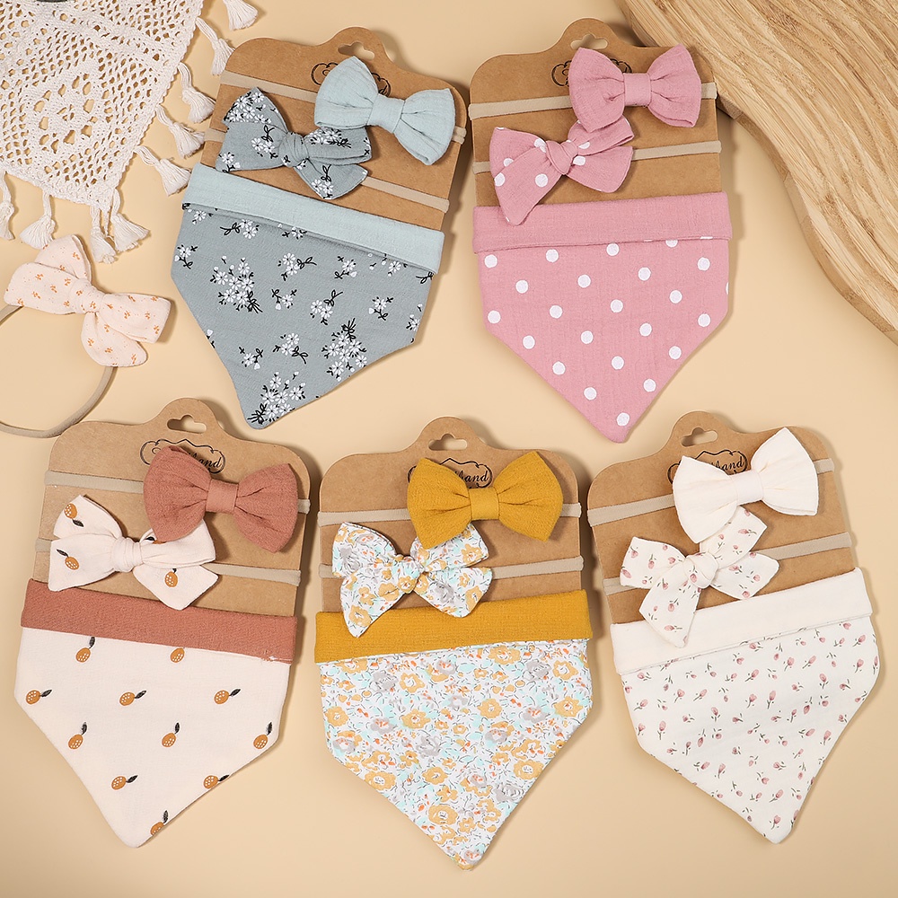 3Pcs/Conjunto Muslin Cotton Baby Bibs Recém Nascido Laços Faixa De Cabeça Triângulo Saliva Toalha Infantil Menino Menina Alimentando Burp Cloth Hair Accessories