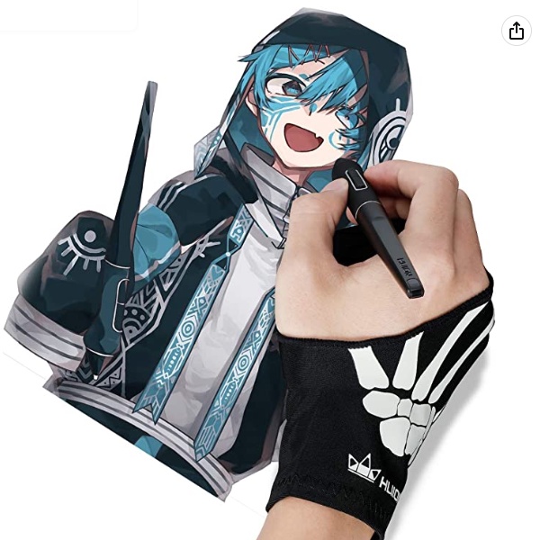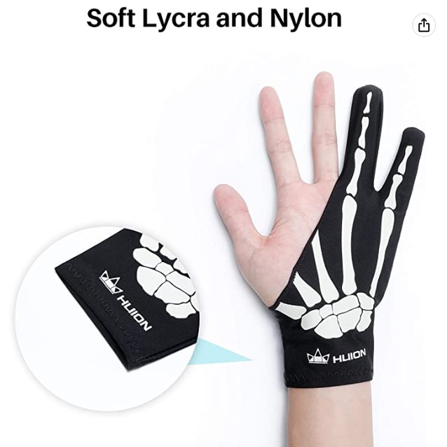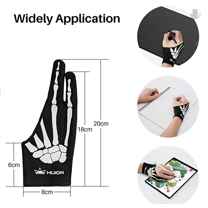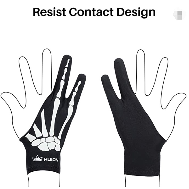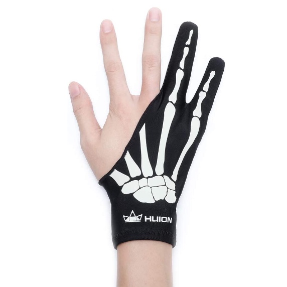 Luvas de artista esqueleto HUION, tamanho livre GL04 para desenho gráfico para mão esquerda e direita