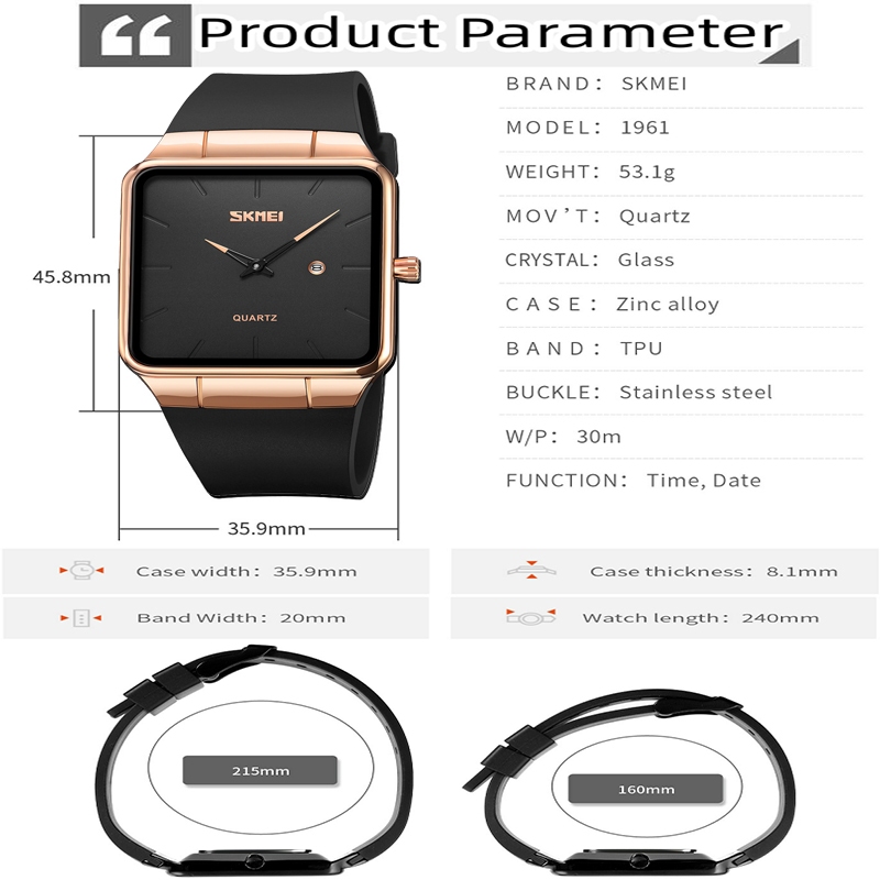 Relógio De Pulso Skmei Calendário Masculino De Quartzo 3 ATM À Prova D'água TPU Pulseira Analógica