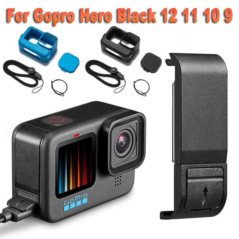 Tampa Lateral Da Porta De Substituição Para GoPro Hero 12/11/10/9 Passagem Preta À Prova De Poeira Através Acessórios