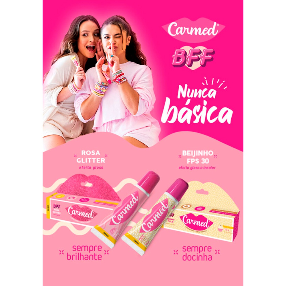 Carmed BFF Protetor Hidratante Labial Efeito Gloss Beijinho FPS30 Rosa Glitter 10g Cimed