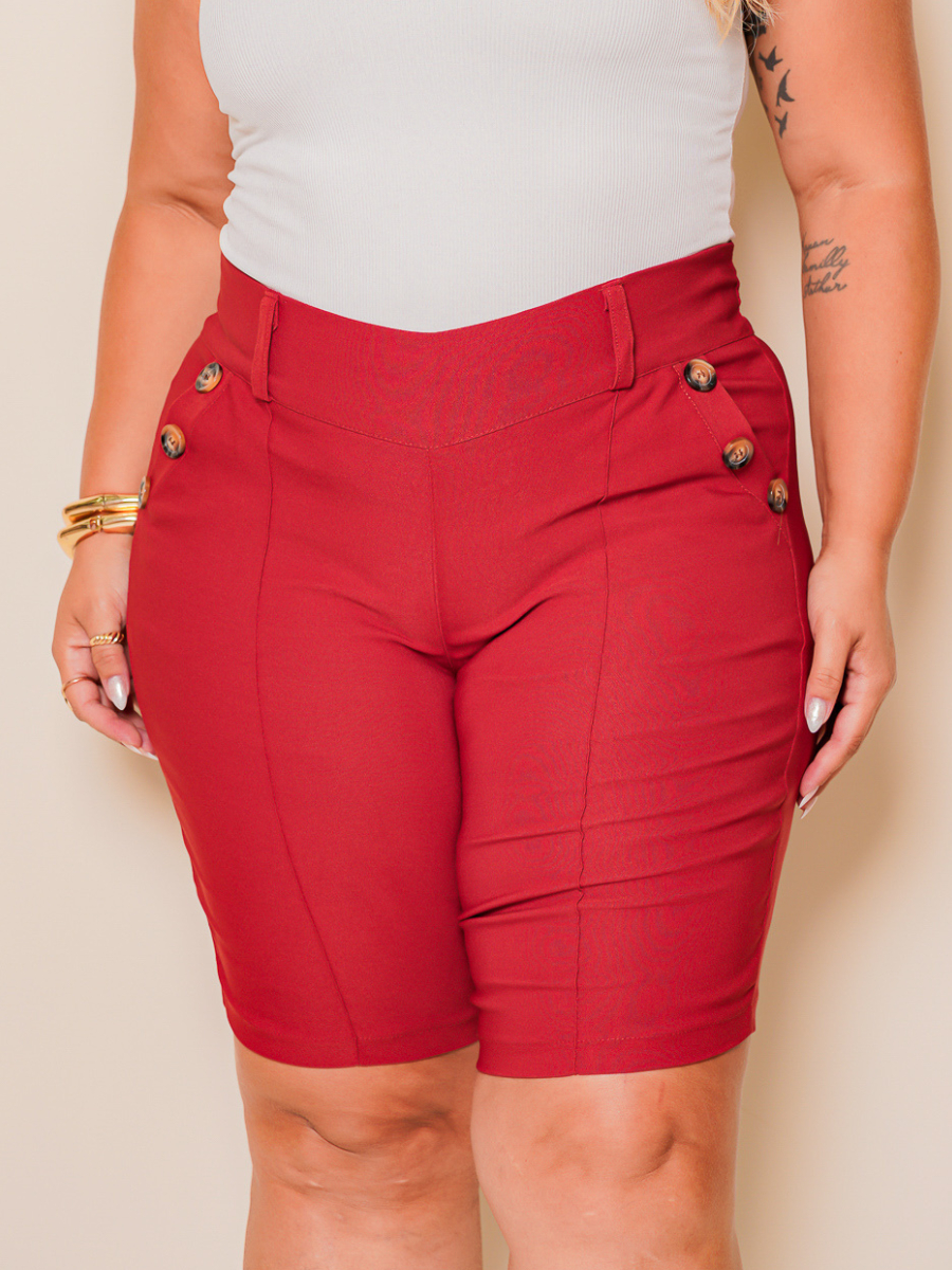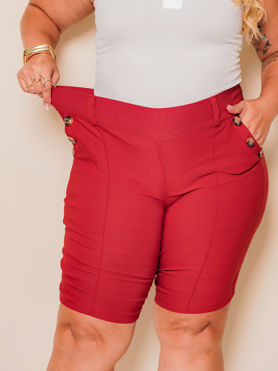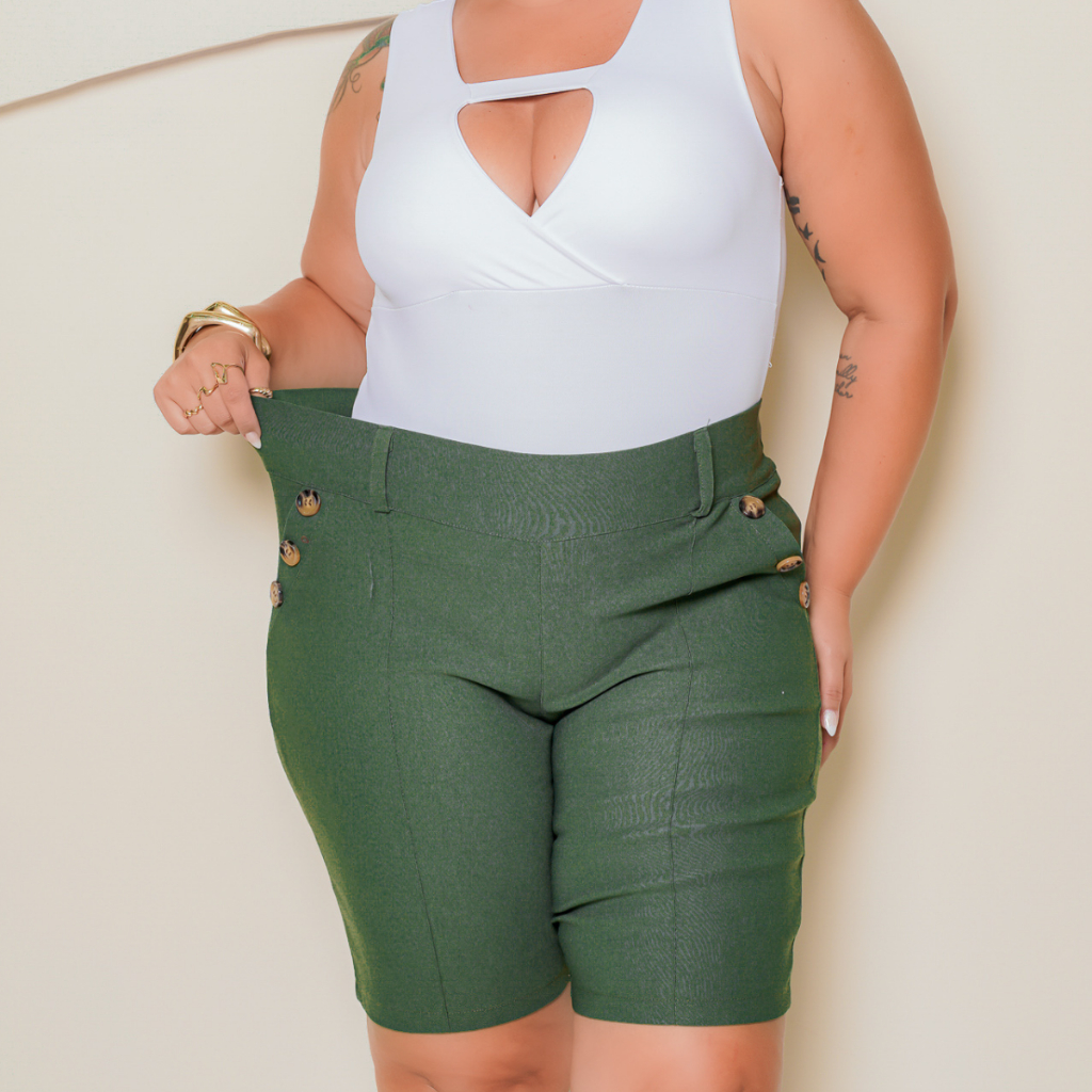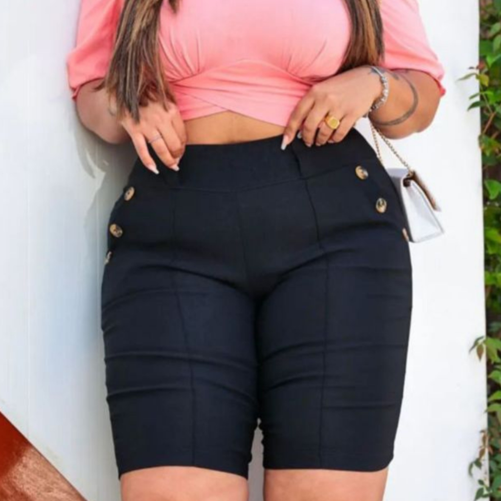 Bermuda Feminina Plus Size Com Bolsos E Botões Modelo Grande Com Lycra Super Conforto Levanta Bumbum