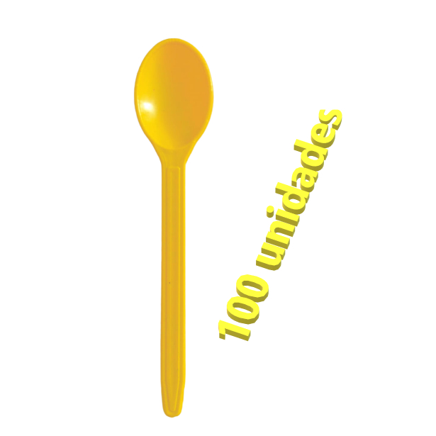100 Colher Descartável Reforçada Amarela Para Açaí Sorvete Sobremesa Bolo