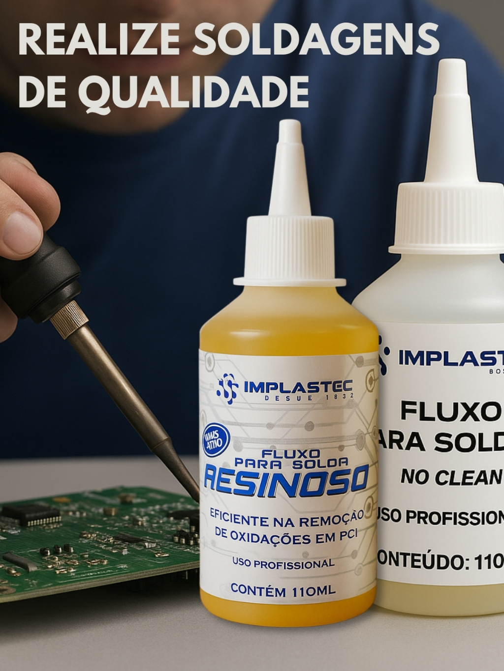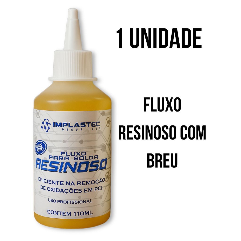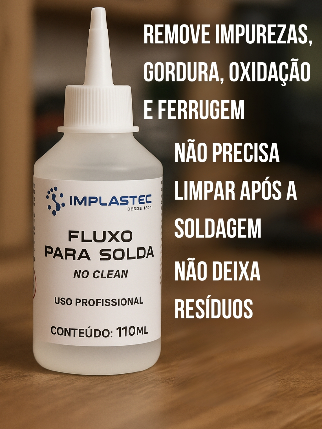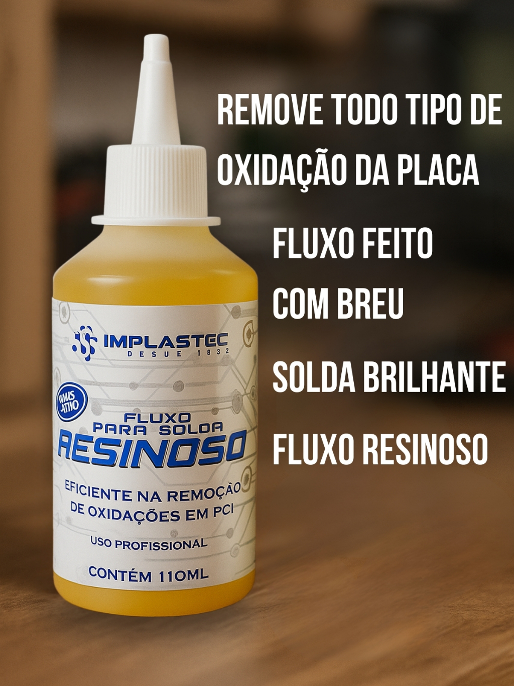 Fluxo de Solda Profissional Implastec – Resinoso com Breu + Líquido No Clean 110ml Eletrônica