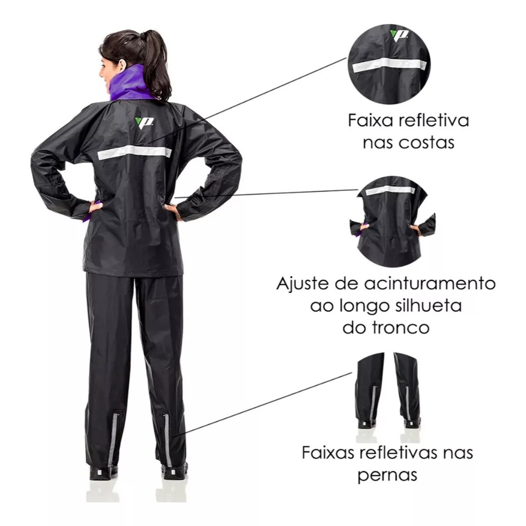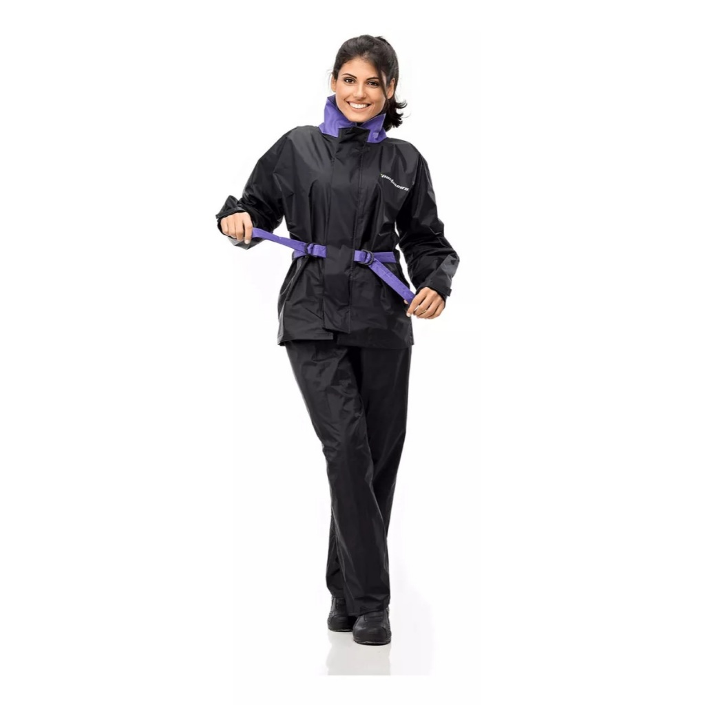 Capa De Chuva Motoqueira Feminina Nylon Pantaneiro Gola Lilaz